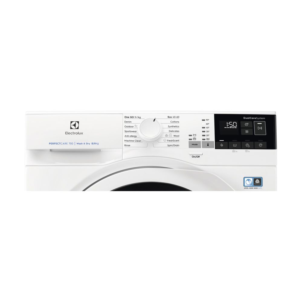 Πλυντήριο-στεγνωτήριο Electrolux EW7WN468W Slim PerfectCare 700 χωρητικότητας 8 και 6 κιλών αντίστοιχα, ελεύθερης εγκατάστασης με χωρητικότητα κάδου 69lt, μέγιστη ταχύτητα στυψίματος 1600 σ.α.λ. (Rpm) και είδος κινητήρα Permanent Magnet.