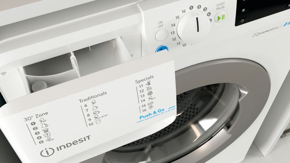 Απόλαυσε καθαρά ρούχα πατώντας μόνο ένα κουμπί με την λειτουργία Push & Wash του πλυντηρίου 91485Χ της Indesit. Διαθέτει 16 προγράμματα πλύσης και είναι εφοδιασμένο με κινητήρα Inverter χαμηλής κατανάλωσης ενέργειας.