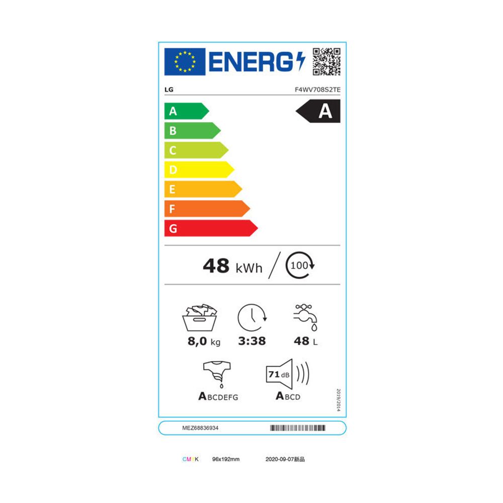 LG F4WV708S2TE πλυντήριο ρούχων 8kg, 1400 στροφές, AI DD ανίχνευση ποιότητας υφάσματος, με πλήρως ηλεκτρονική λειτουργία.