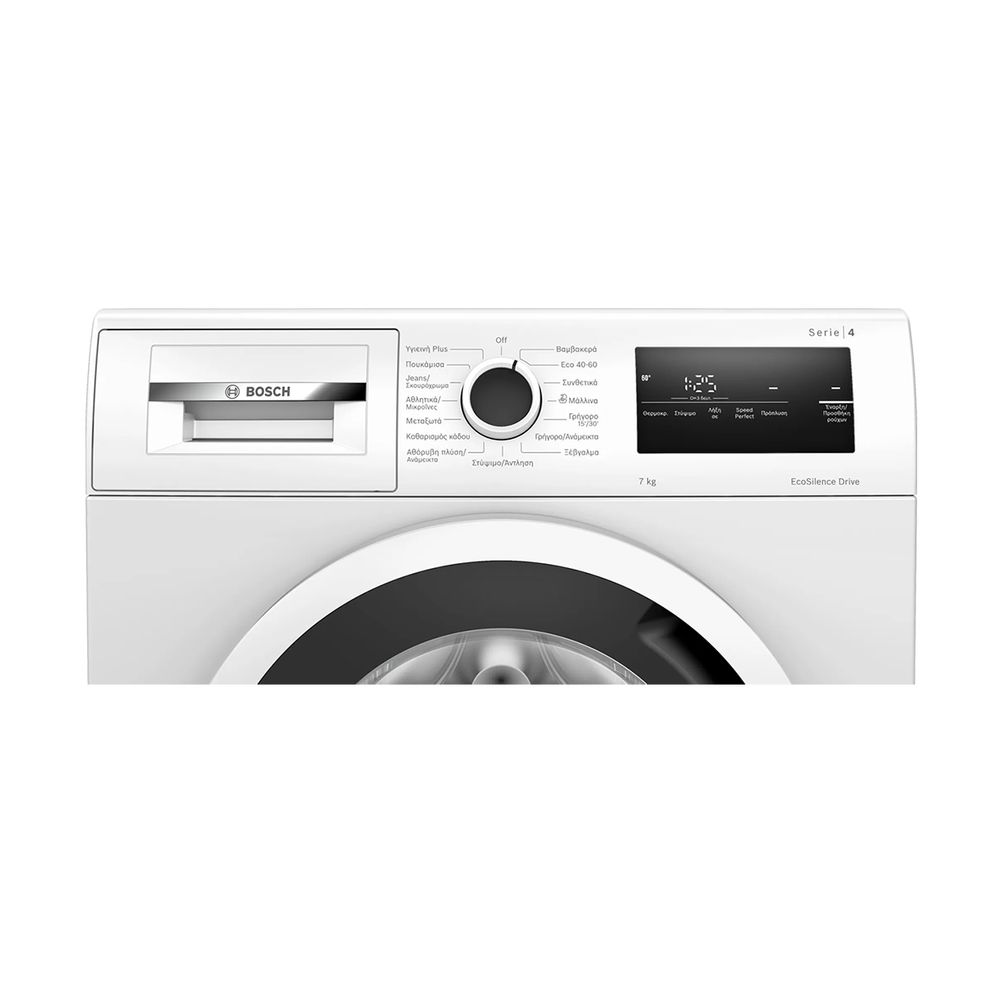 Πλυντήριο ρούχων WAN24117GR από την εταιρεία Bosch χωρητικότητας 7kg, με EcoSilence Drive, αθόρυβη λειτουργία και εξαιρετική ανθεκτικότητα, την οποία μπορείς να εμπιστευτείς.
