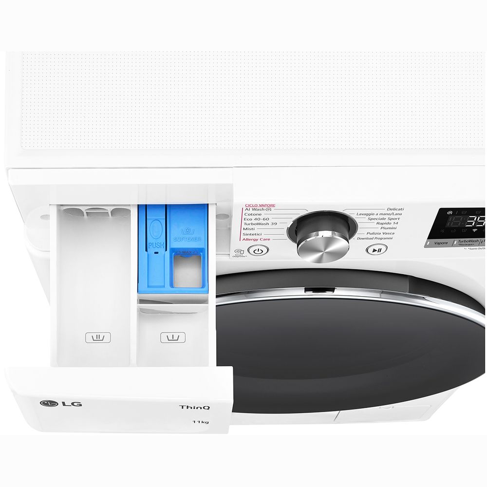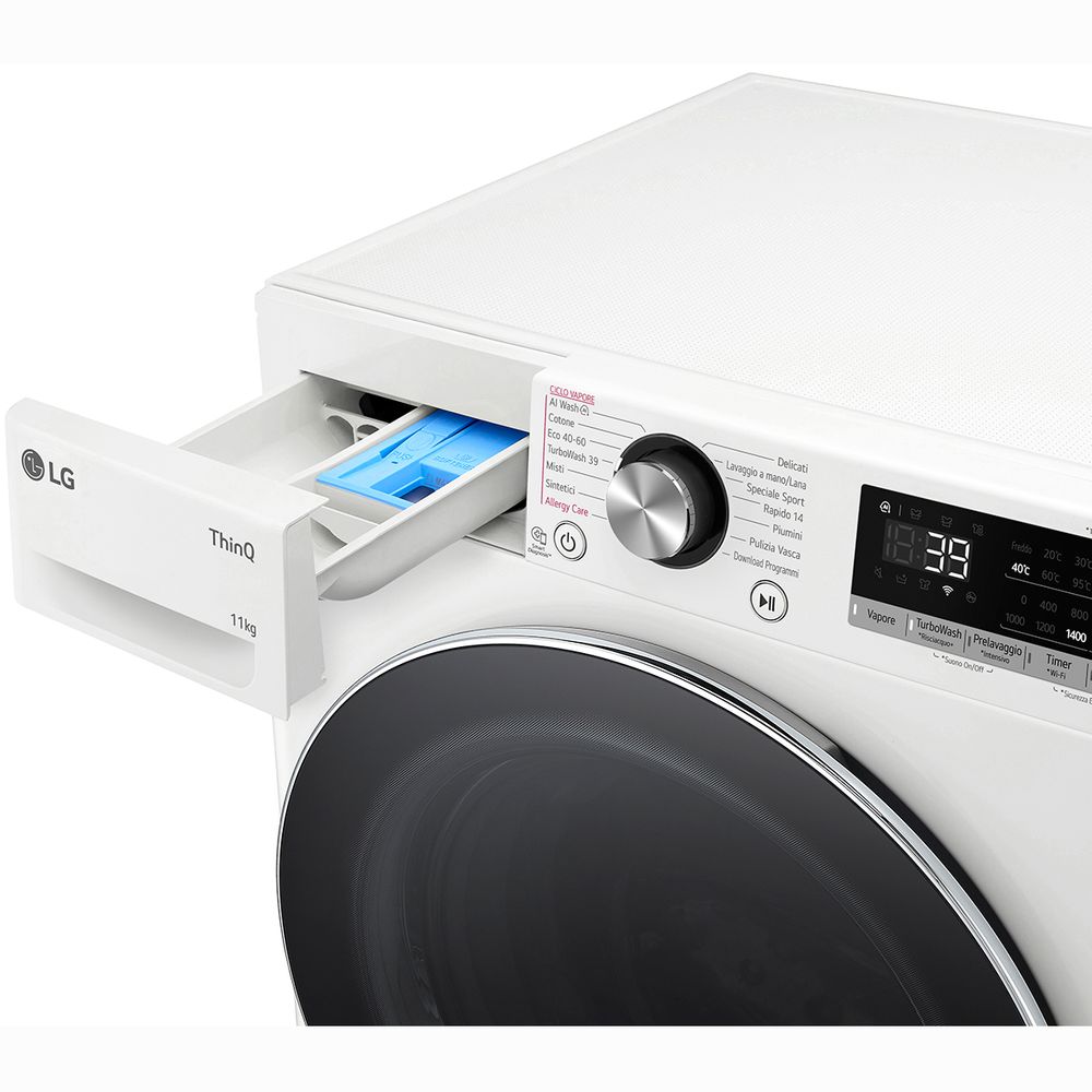 Πλυντήριο LG F4R7011TSWC 11kg με τεχνολογία τεχνητής νοημοσύνης AI DD που εντοπίζει αυτόματα τον όγκο του φορτίου, αξιολογεί την απαλότητα του υφάσματος και επιλέγει αυτόματα τις βέλτιστες κινήσεις για το ύφασμα. Επιπλέον, η τεχνολογία Steam αποστειρώνει τα υφάσματα με τη χρήση ατμού εξουδετερώνοντας τα αλλεργιογόνα κατά 99.9%, ενώ παράλληλα μειώνει τις ζάρες.