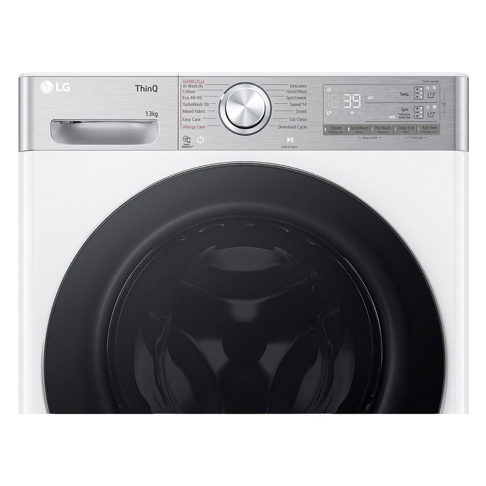 Πλυντήριο ρούχων LG F4R9513TPWC χωρητικότητας 13 κιλών, με σύστημα AI DD όπου το πλυντήριο επιλέγει αυτόματα τις βέλτιστες κινήσεις για το ύφασμα και τεχνολογία Steam για εξάλειψη του 99,9% των αλλεργιογόνων.