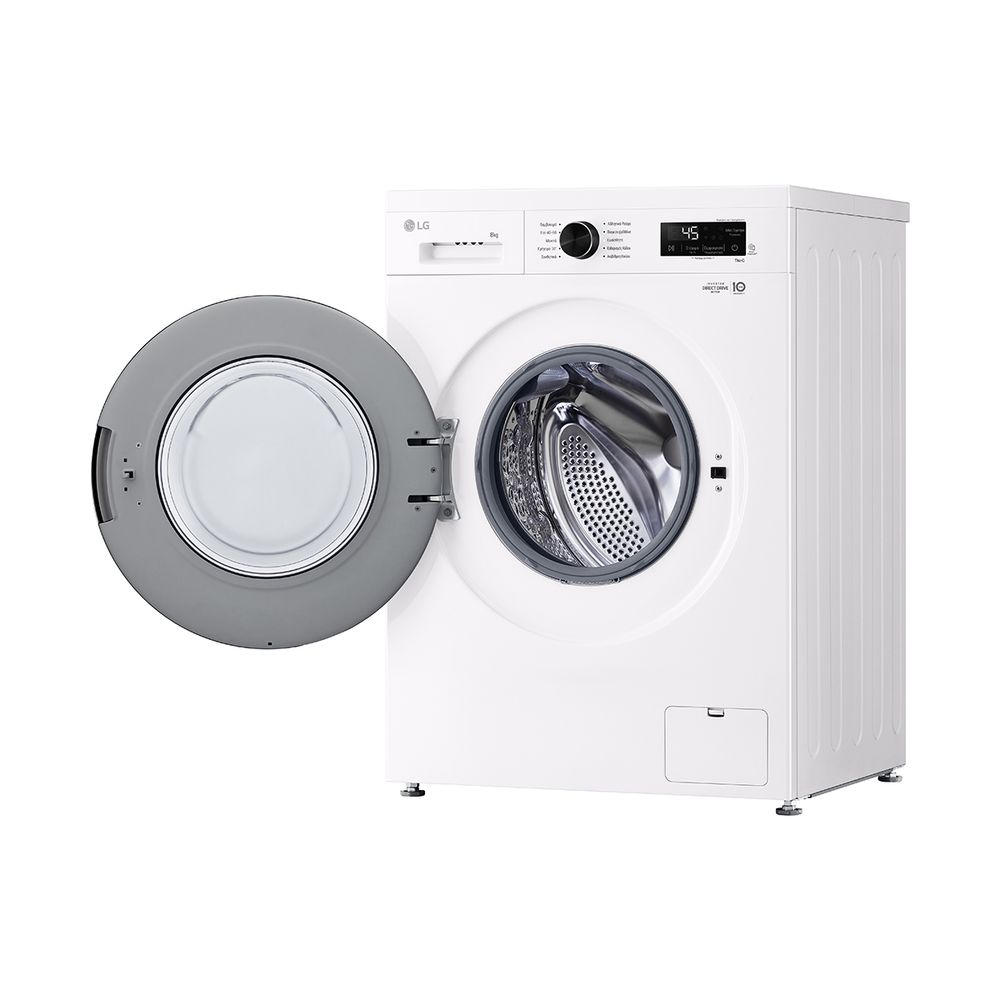 Πλυντήριο LG 8kg με τεχνολογία τεχνητής νοημοσύνης AI DD που εντοπίζει αυτόματα τον όγκο του φορτίου, αξιολογεί την απαλότητα του υφάσματος και επιλέγει αυτόματα τις βέλτιστες κινήσεις για το ύφασμα. Επιπλέον, η τεχνολογία Steam αποστειρώνει τα υφάσματα με τη χρήση ατμού εξουδετερώνοντας τα αλλεργιογόνα κατά 99.9%, ενώ παράλληλα μειώνει τις ζάρες.