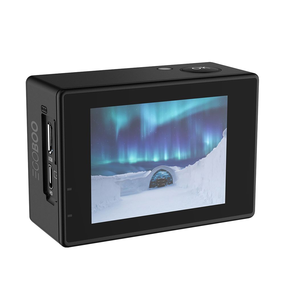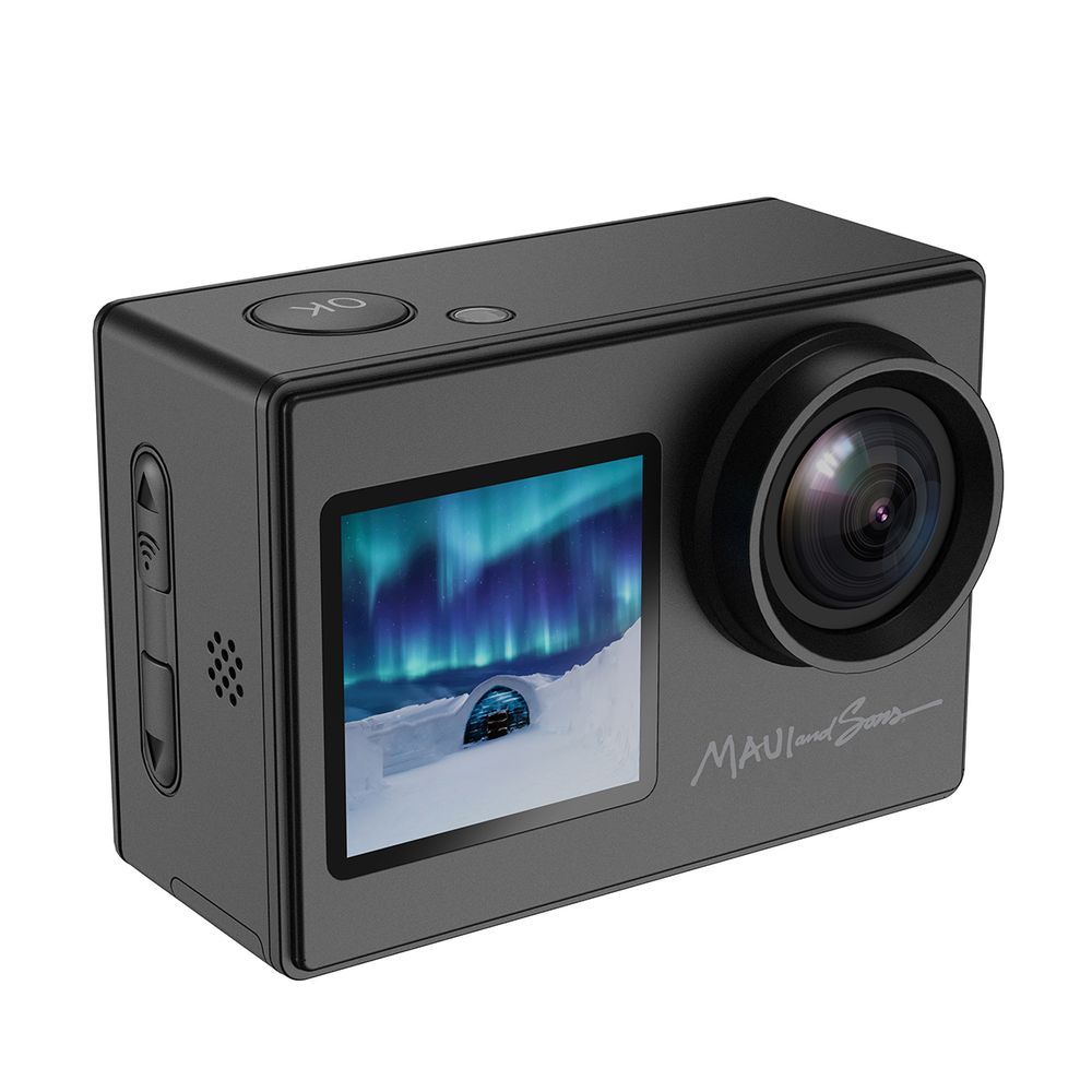 Η action camera Egoboo X Maui & Sons προσφέρει υψηλής ποιότητας εικόνες και βίντεο σε ανάλυση 4K Ultra HD. Διαθέτει ευρυγώνιο φακό με γωνία θέασης 170 μοίρες, ο οποίος σου επιτρέπει να καταγράφεις ευρεία και πλούσια σε λεπτομέρειες πλάνα. Επιπλέον διαθέτει διπλή οθόνη (2.0” & 1.3”), μπαταρία 900mAh και είναι αδιάβροχη έως τα 30m (με την θήκη) και διαθέτει και mobile app.