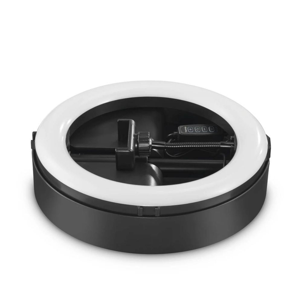 Με το Hama Spotlight Foldup RGB 102 Ring Light, δημιουργείς εντυπωσιακό φωτισμό για βίντεο, livestreams και φωτογραφίες χάρη στα 158 LED (λευκά, θερμά και RGB) που προσφέρουν ισχυρή φωτεινότητα 1100 lm. Με 3 θερμοκρασίες χρώματος και 8 επίπεδα έντασης, προσαρμόζεις το αποτέλεσμα σε κάθε σκηνή, ενώ ο δακτύλιος 10,2" γέρνει χωρίς διαβαθμίσεις για ευέλικτες γωνίες λήψης. Η τροφοδοσία USB και η αναδιπλούμενη, ελαφριά κατασκευή το κάνουν ιδανικό για χρήση στο σπίτι ή εν κινήσει.