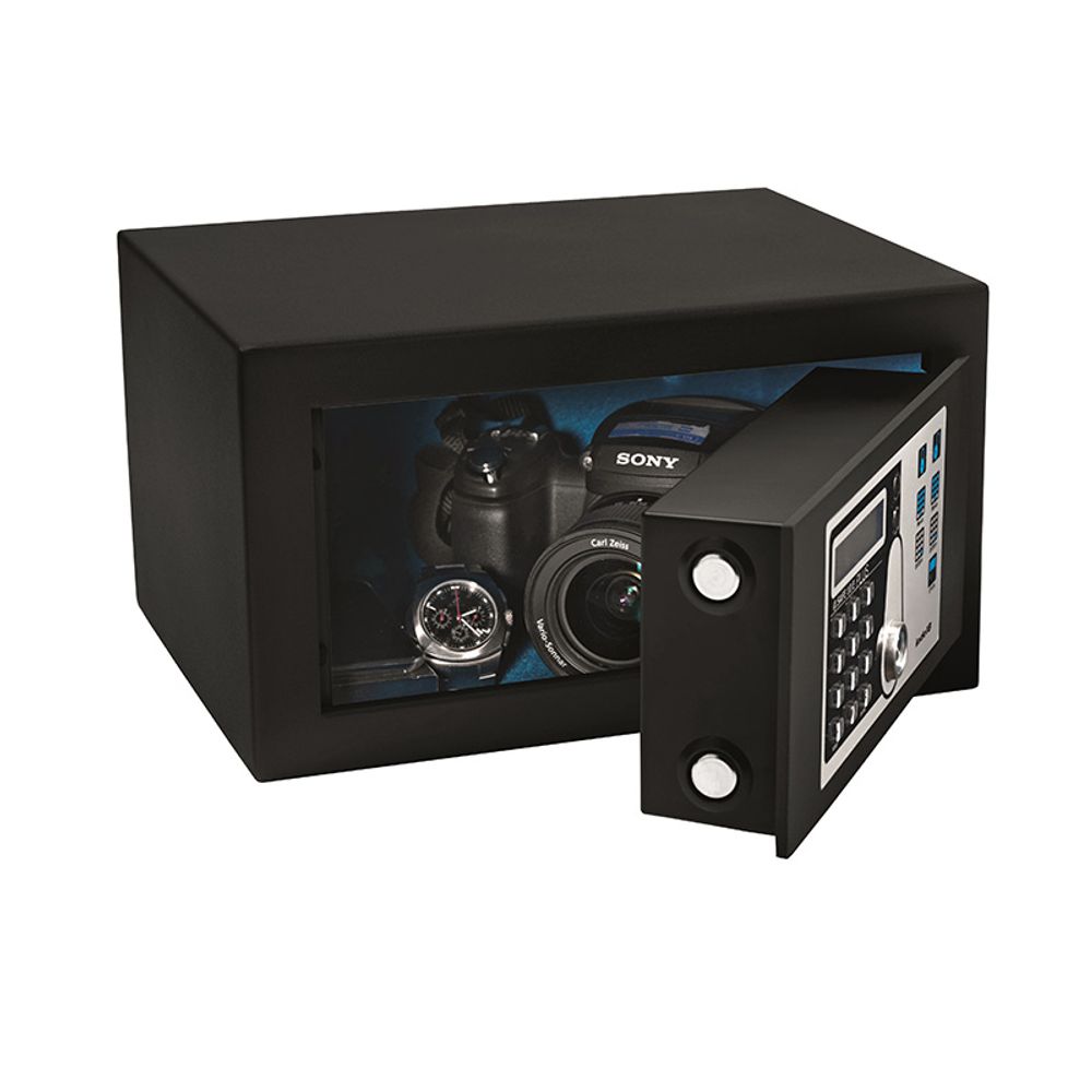 Το Safe 10Ε Plus λόγο του περιορισμένου μεγέθους του ταιριάζει απόλυτα σε περιορισμένους χώρους. Εξοπλισμένο με εσωτερικό φωτισμό LED, φωτιζόμενο πληκτρολόγιο, φωτιζόμενη οθόνη και εσωτερική επένδυση, κρατά τα πολύτιμα αντικείμενα σου ασφαλή χάρη στο τριπλό σύστημα ασφάλειας.