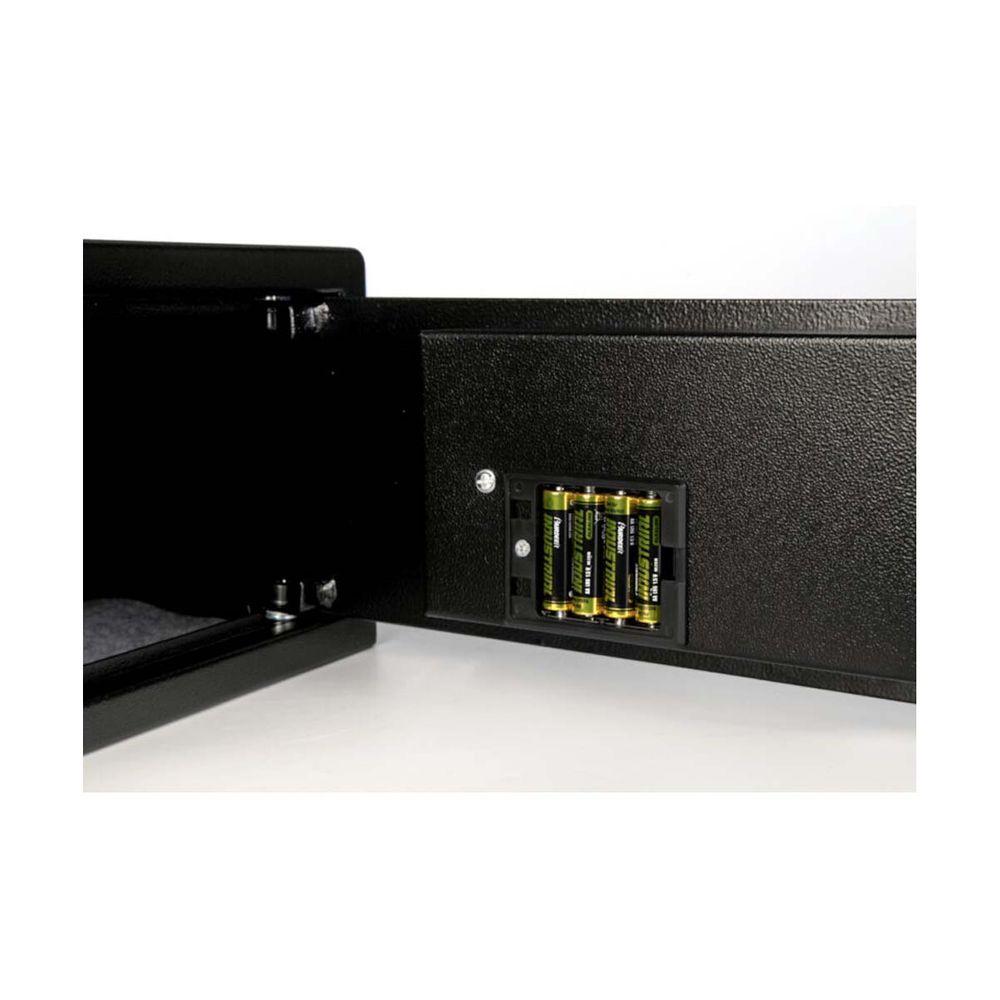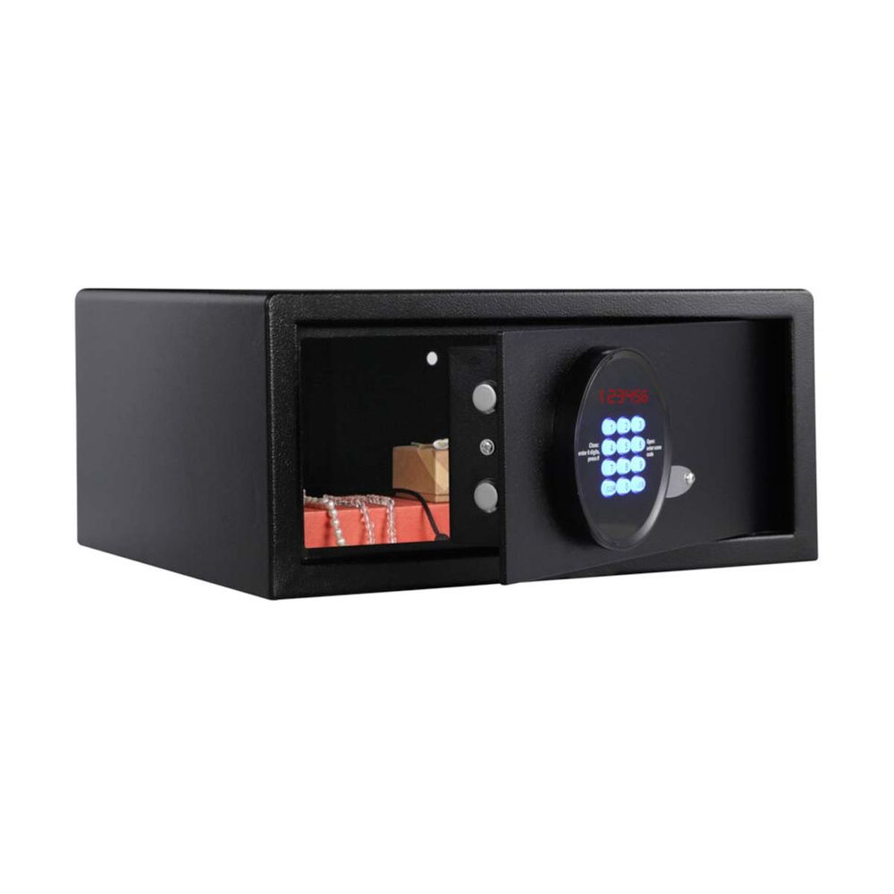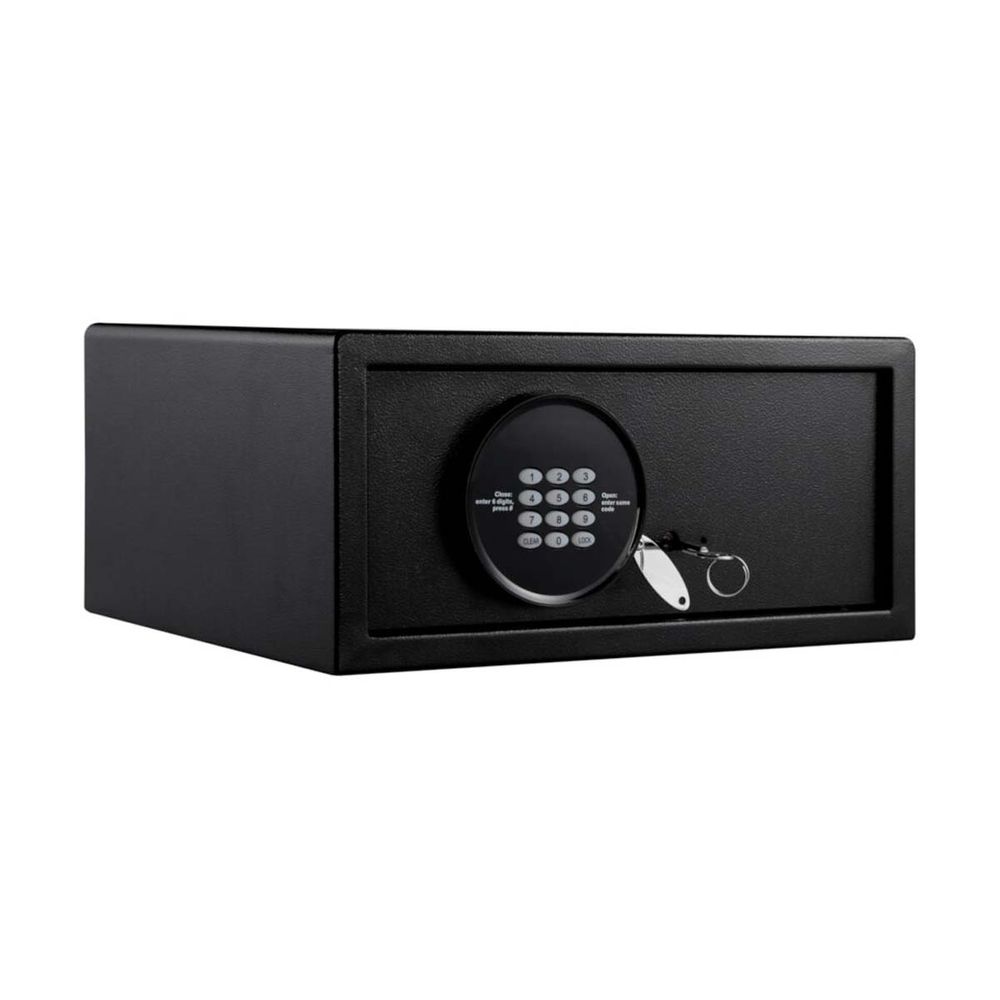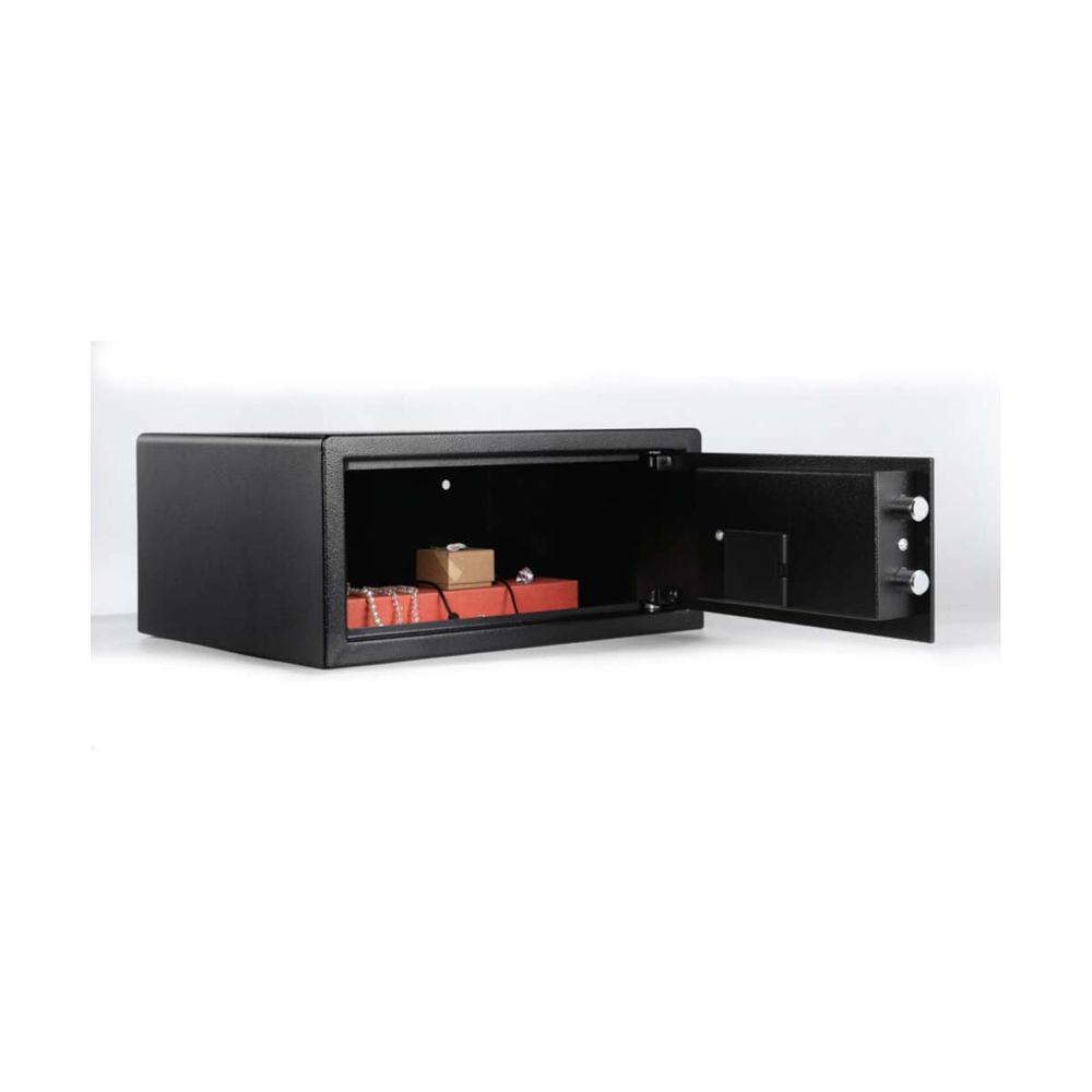 Χρηματοκιβώτιο ιδανικό για ξενοδοχεία, εξωτερικών διαστάσεων 20 x 43 x 37 cm με ηλεκτρονική κλειδαριά που λειτουργεί με πληκτρολόγιο. Τοποθετείται στον τοίχο και διαθέτει 2 κλειδιά ασφαλείας και πάχος τοιχωμάτων 3 mm. Ειδικά σχεδιασμένο για ξενοδοχεία, ενοικιαζόμενα δωμάτια και σπίτια Airbnb. Ανοίγει με 2 τρόπους, αριθμητικό κωδικό ή κλειδί, για μεγαλύτερη ευκολία χρήσης.