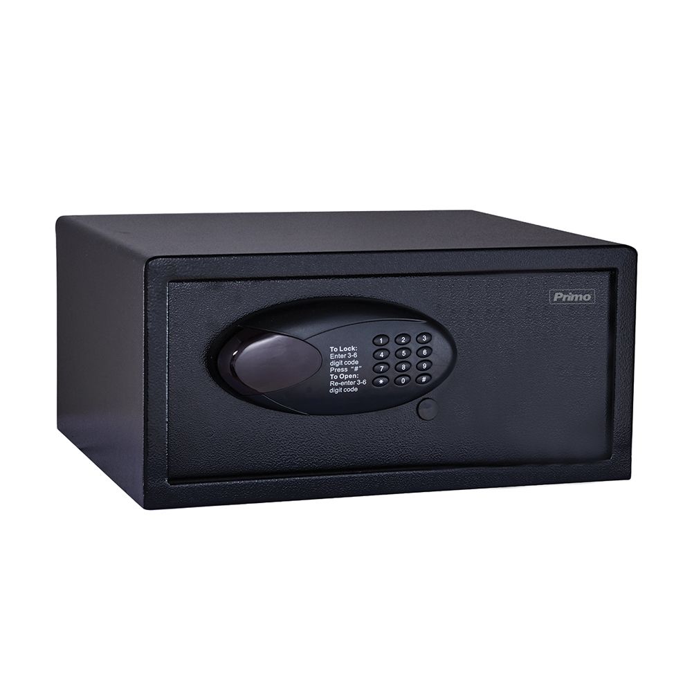Χρηματοκιβώτιο Primo PRSB-50071 με κωδικός 3 έως 8 ψηφίων και ψηφιακή οθόνη ενδείξεων. Διαθέτει σύστημα κλειδώματος σε περίπτωση λάθος καταχωρήσεων, 2 κλειδιά ανοίγματος, τρύπες στο σώμα της συσκευής για τη στερεοποίησή της σε οποιαδήποτε επιφάνεια, καθώς και μπάρες κλειδώματος από συμπαγές ατσάλι 18mm. Λειτουργεί με μπαταρίες 4xΑΑ (4x1.5V) (συμπεριλαμβάνονται).