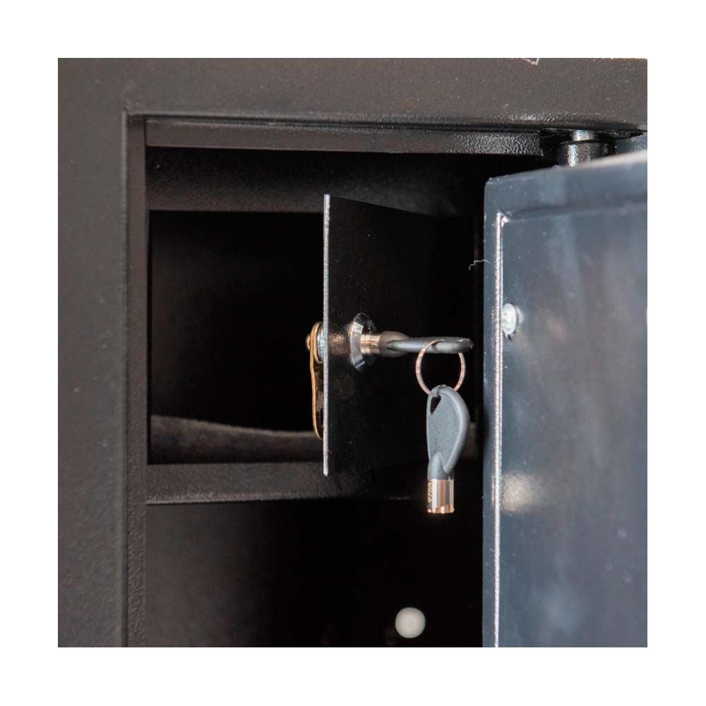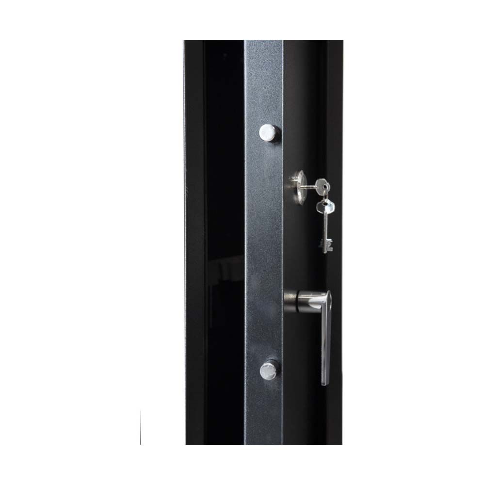 Οπλοκιβώτιο 3 θέσεων κατασκευασμένο από συμπαγή χάλυβα με κλειδαριά. Στερεώνεται με ασφάλεια στον τοίχο με 5 μπουλόνια Fixina. Στο εσωτερικό του διαθέτει χωρίσματα από αφρό υψηλής πυκνότητας.