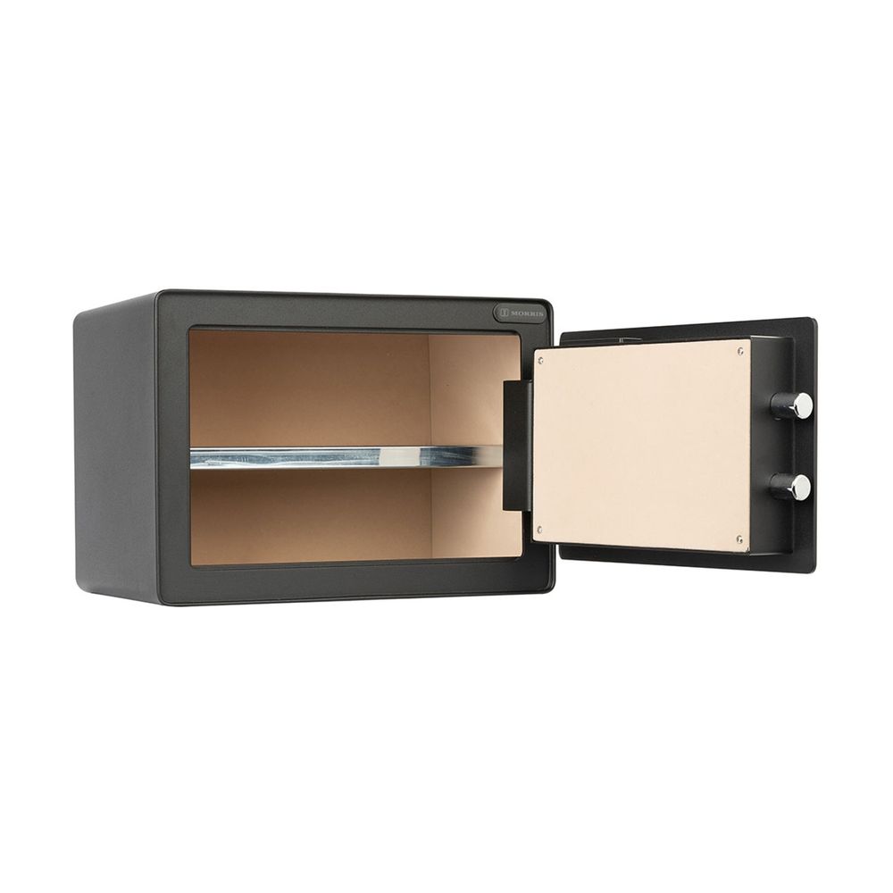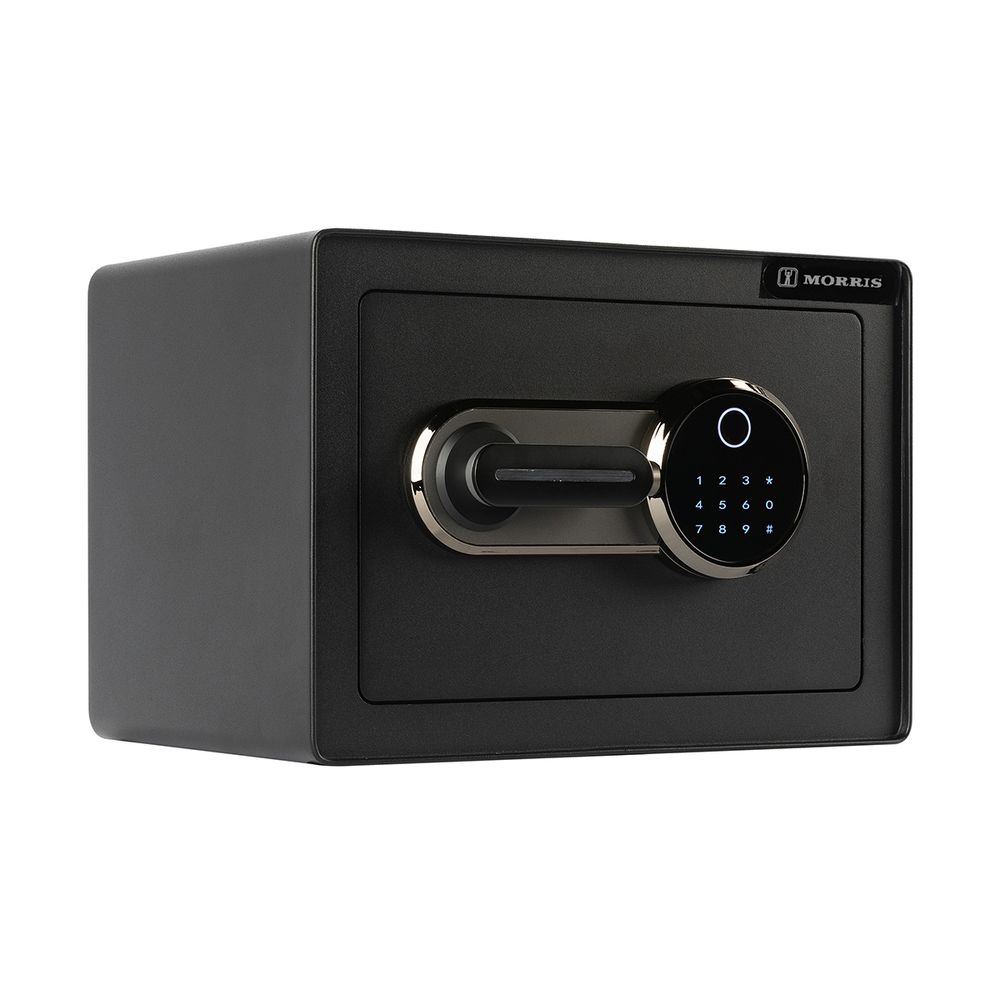 Ηλεκτρονικό χρηματοκιβώτιο Morris με εσωτερική επένδυση, σχεδιασμένο για να προσφέρει ασφάλεια και στυλ. Διαθέτει εξωτερικές διαστάσεις 355x250x250mmm (ΠxBxY), ενώ η θωρακισμένη πόρτα έχει πάχος 4mm και το σώμα 1.5mm, εξασφαλίζοντας μέγιστη προστασία για τα πολύτιμα αντικείμενά σου. Επιπρόσθετα ανοίγει και με δαχτυλικό αποτύπωμα και διαθέτει συναγερμό αν κάνεις 3 φορές λανθασμένη απόπειρα.