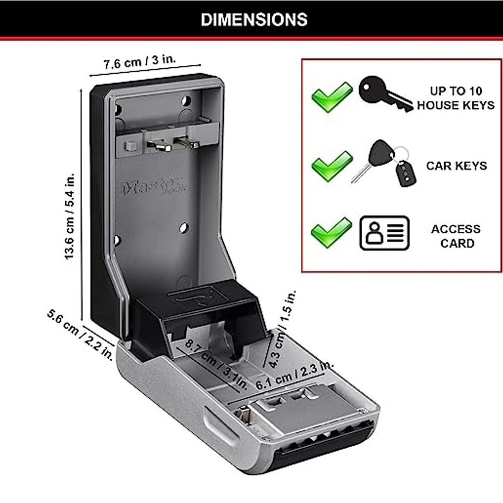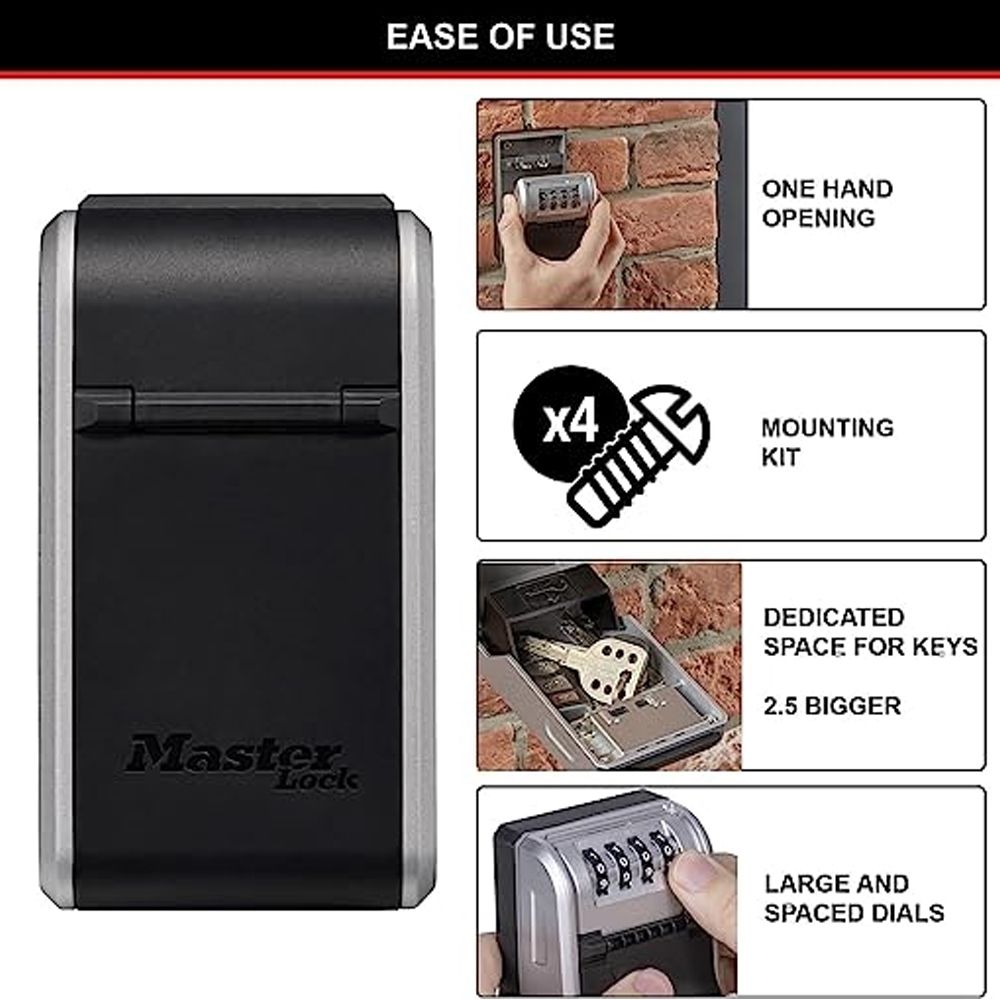 Εξαιρετική λύση για ιδιοκτήτες Airbnb και ενοικίαση σπιτιού. Παρέχει εύκολη πρόσβαση σε φροντιστές και κατ’ οίκον εργαζόμενους. Ιδανικό για να μοιράζεσαι τα κλειδιά με την οικογένεια ή τους συγκατοίκους σου. Ρύθμισε τον δικό σου 4ψήφιο συνδυασμό (περισσότεροι από 10.000 πιθανοί συνδυασμοί). Διαθέτει πλαστικό κάλυμμα προστασίας από τις καιρικές συνθήκες καθώς και σχεδιασμό επιτοίχιας βάσης για μόνιμη εγκατάσταση (περιλαμβάνεται το Kit τοποθέτησης).