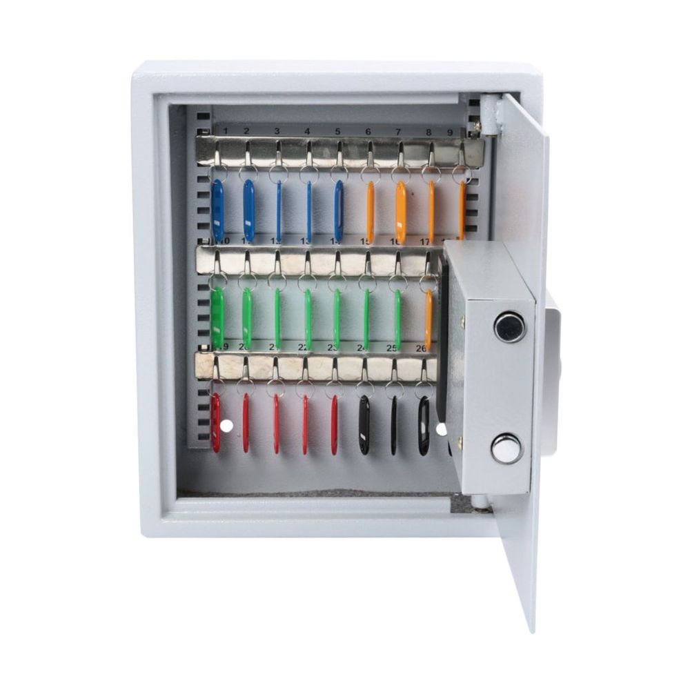Χωρητικότητα: 27 κλειδιά, Ατομικός αριθμητικός κωδικός (3-8 ψηφία), 2 επιλογές ανοίγματος (αριθμητικός κωδικός, κλειδί ασφαλείας), Συναγερμός σε περίπτωση λανθασμένης εισαγωγής, Ένδειξη κατάστασης λειτουργίας μέσω 3 ενδεικτικών λυχνιών (πράσινες, κίτρινες, κόκκινες), Κλείδωμα με 2 συμπαγή μεταλλικά μπουλόνια, Αριθμημένες υποδοχές κλειδιών, Προ-διάτρητες οπές για απλή εγκατάσταση, Τοποθετείται στον τοίχο με βίδες
