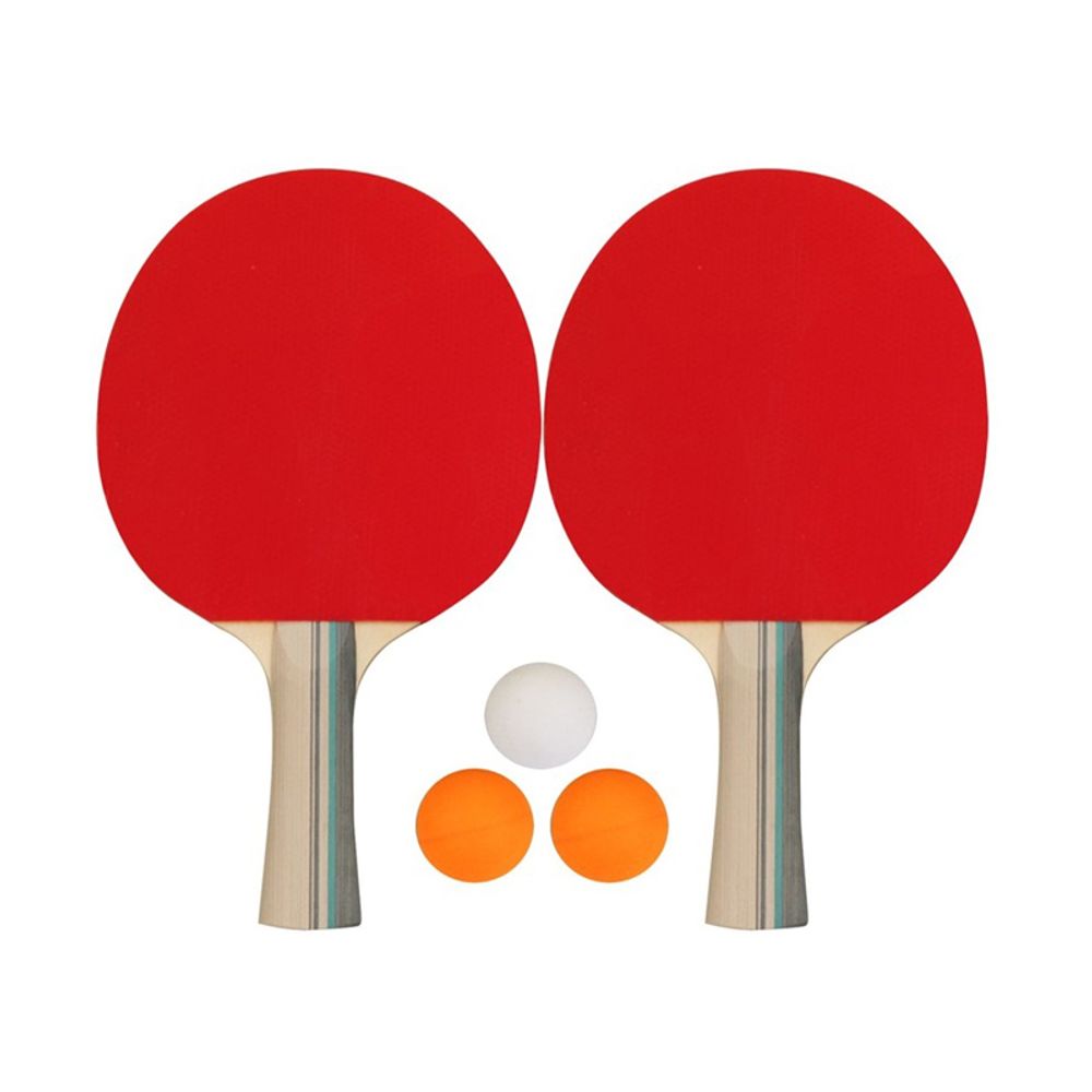 Σετ ping pong που περιλαμβάνει δύο ρακέτες, κατασκευασμένες με 9 στρώσεις ξύλου για βέλτιστη αντοχή, 2 πορτοκαλί μπαλάκια και 1 λευκό.