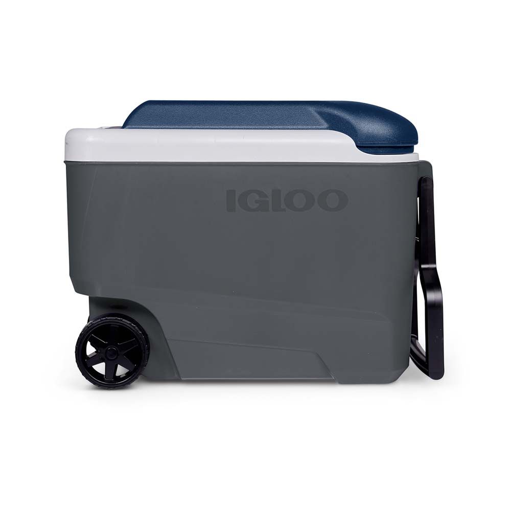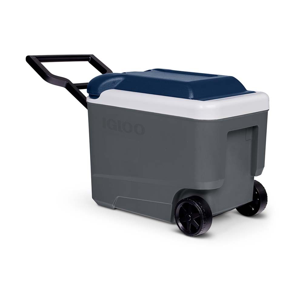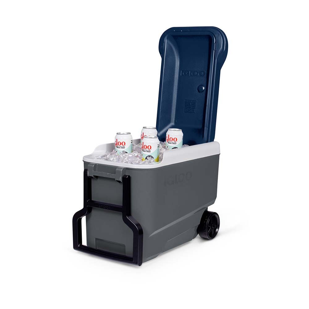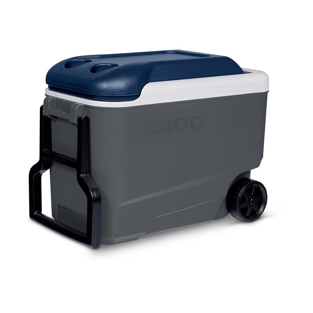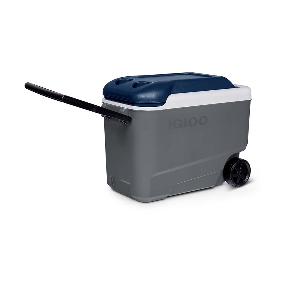 Το φορητό ψυγείο Igloo MaxCold Roller 40 38L διαθέτει τροχούς και χειρολαβή έλξης για εύκολη μεταφορά.