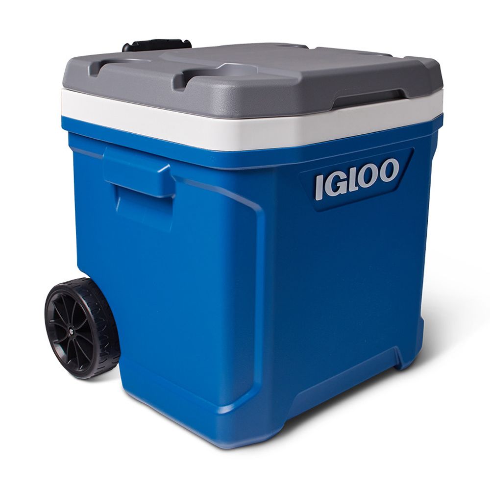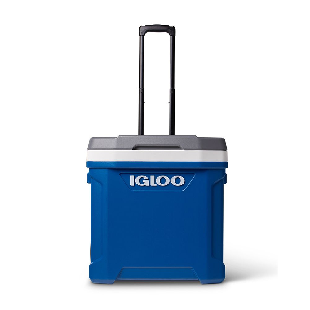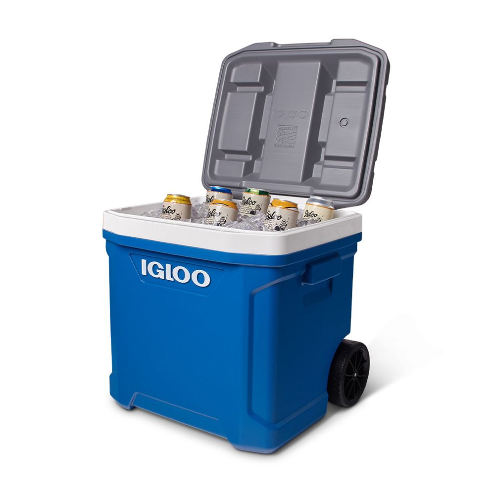 Φορητό ψυγείο Igloo Latitude 60 με μόνωση ThermeCool - φιλική προς το περιβάλλον και Cool Riser Technology. Με μεγάλους τροχούς και τηλεσκοπική χειρολαβή για εύκολη μεταφορά. Με ειδικό εσωτερικό πλαστικό, ανθεκτικό στους λεκέδες και τις μυρωδιές καθώς και δύο χωνευτές χειρολαβές. Με υποδοχές πρόσδεσης στο καπάκι για σταθεροποίηση στο αυτοκίνητο ή στο σκάφος και 4 θήκες ποτηριού στο καπάκι, με αποστράγγιση.