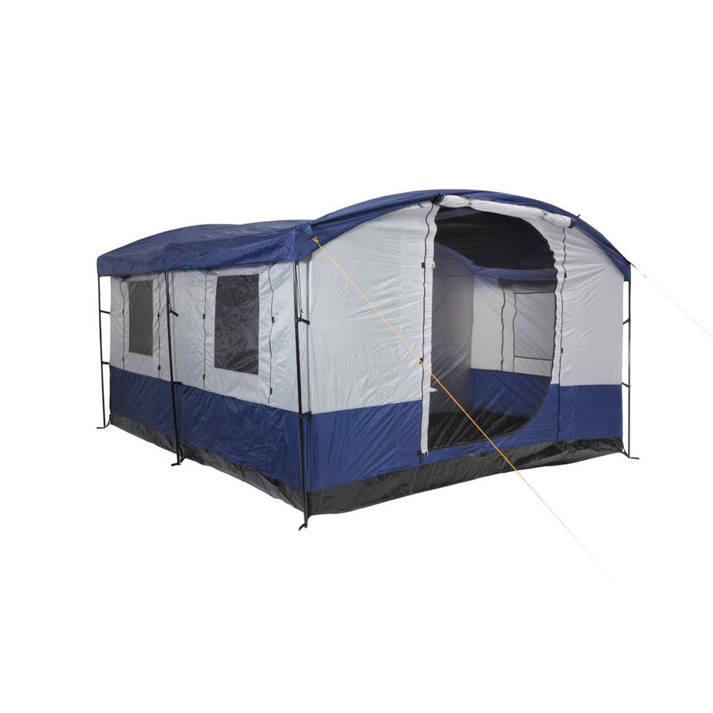 Σκηνή με 3 πόρτες και 5 παράθυρα με κουνουπιέρα, πρακτικές τσέπες εσωτερικά του δωματίου, υποδοχή λάμπας και ενισχυμένες αρθρώσεις για μέγιστη σταθερότητα. Με κάθετες μπανέλες στήριξης των τόξων της οροφής, για καλύτερο τέντωμα. Συμπεριλαμβάνονται 2 ορθοστάτες για τέντα. Διαθέτει αδιαβροχοποίηση 1500mm και προστασία UV+30.