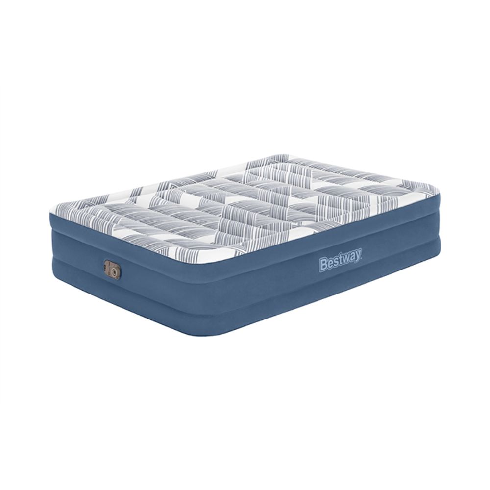 Στρώμα αέρος Bestway, σχεδιασμένο για εσωτερική χρήση. Διαθέτει σύστημα εσωτερικής υποστήριξης Tritech για μεγαλύτερη αντοχή, ενσωματωμένη αντλία 220-240V AC για να φουσκώνει σε λίγα λεπτά και αντιμικροβιακή προστασία Ultra-Fresh.