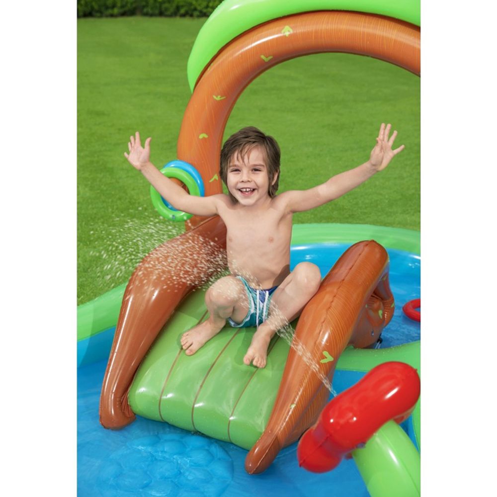 Περιλαμβάνει παιχνίδι με 4 φουσκωτούς δακτυλίους, παιχνίδι με 10 μπάλες, φουσκωτή αλεπού, λουλούδι - εκτοξευτή σπρέι νερού που συνδέεται με λάστιχο & αποσπώμενη φουσκωτή τσουλήθρα