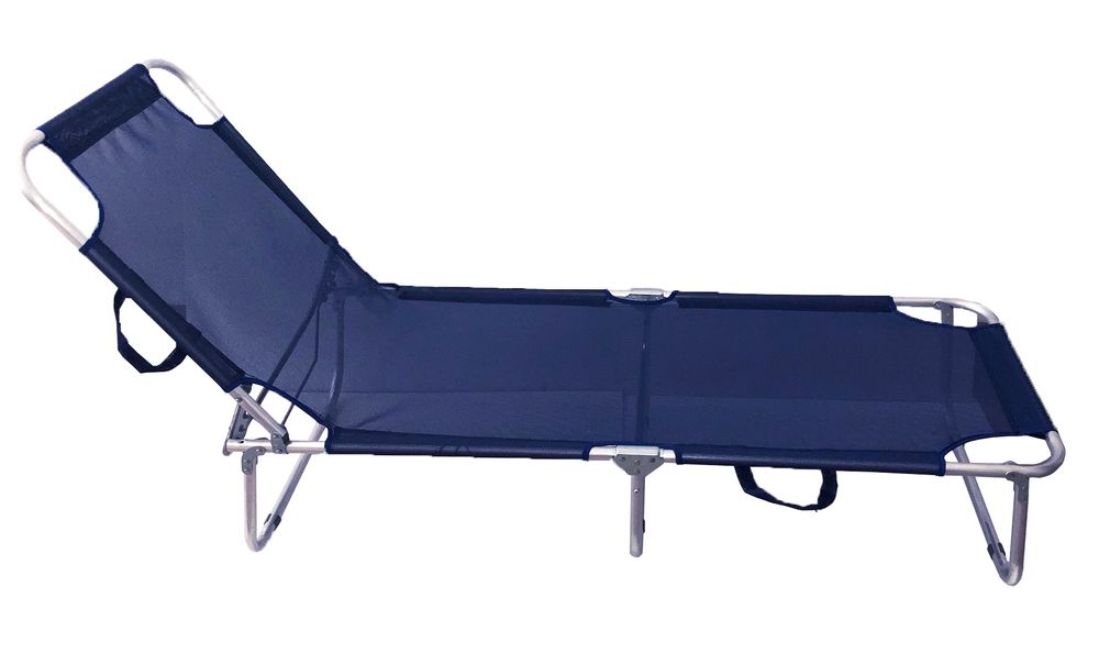 Πτυσσόμενη ξαπλώστρα με ρυθμιζόμενη πλάτη ιδανική για την παραλία, το camping και τον κήπο. Κατασκευασμένη απο αλουμίνιο. Εύκολη στην αναδίπλωση και στην μεταφορά της χάρη στα χερούλια που διαθέτει.
