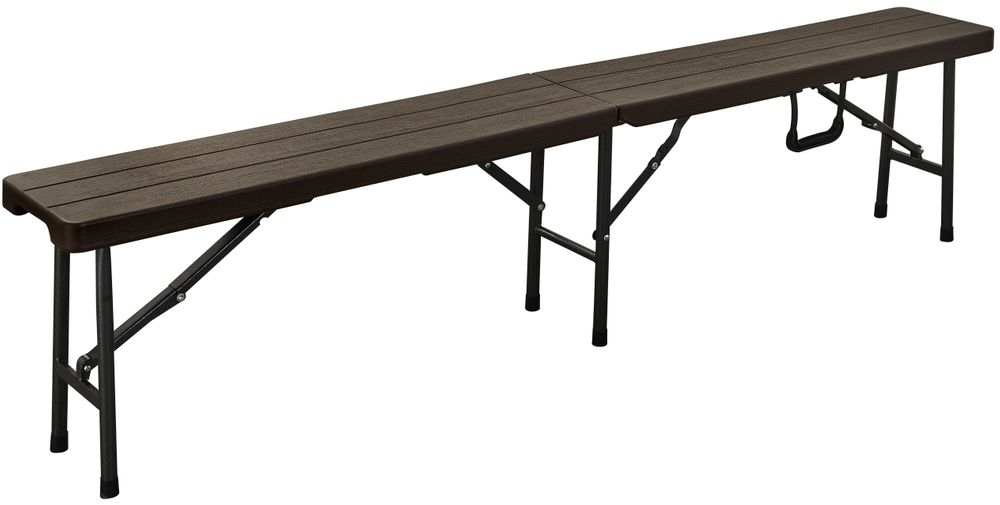 Παγκάκι πτυσσόμενο catering σε απομίμηση ξύλου με διαστάσεις 43 x 180 x 25 cm.