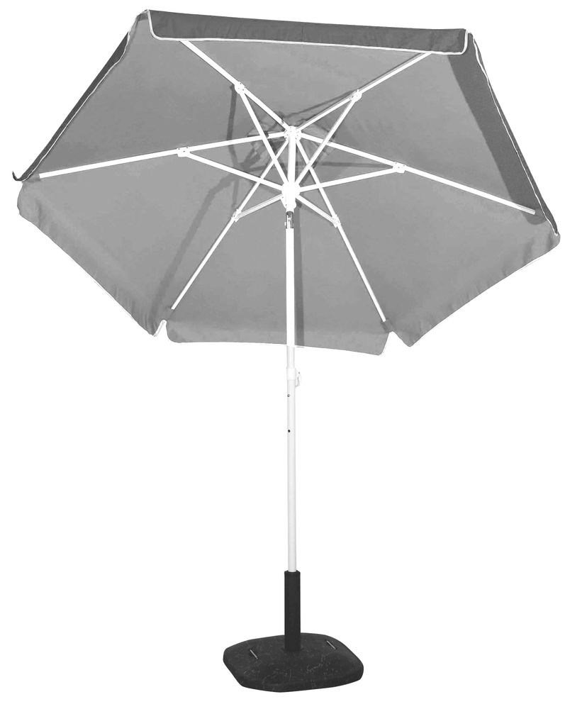 Βαρέως τύπου, ομπρέλα βεράντας - κήπου - θαλάσσης μπλε με ασημί επίστρωση. Διαθέτει, δυο θέσεις ύψους στήριξης με ενσωματωμένους κρίκους και θήκη μεταφοράς.