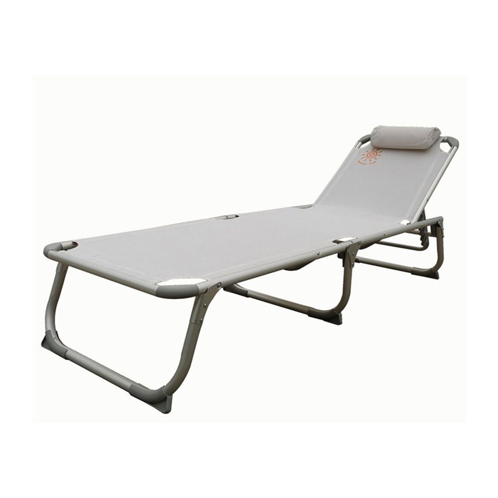 Ξαπλώστρα παραλίας με μαξιλάρι, κατασκευασμένη από αλουμίνιο και ύφασμα Textilene 2x1. Διαθέτει ρυθμιζόμενη πλάτη και είναι ιδιαίτερα εύκολη στην αναδίπλωση και την μεταφορά της. Είναι ιδανική για το camping, την παραλία και τον κήπο.