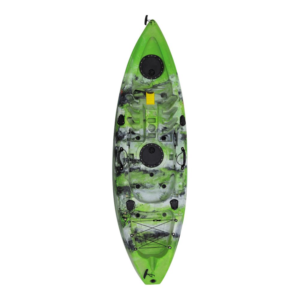 Sit-on-top Kayak 1 θέση ιδανικό για ψάρεμα με διαστάσειs 270 x 83 x 33cm.Eχει βάροs 20Kg , μέγιστο φορτίο 120Kg και διαθέτει 2 αδιάβροχουs χώρουs αποθήκευσης αντικειμένων και 4 καλαμοθήκες.Υπάρχει υποδοχή τοποθέτηση περιστρεφόμενης καλαμοθήκης και ελαστικό κορδόνι συγκράτησηs αντικειμένων στην πρύμνη. Επισηs διαθέτει ελαστικό κορδόνι συγκράτησης κουπιού και δέχεται κάθισμα αλουμινίου.