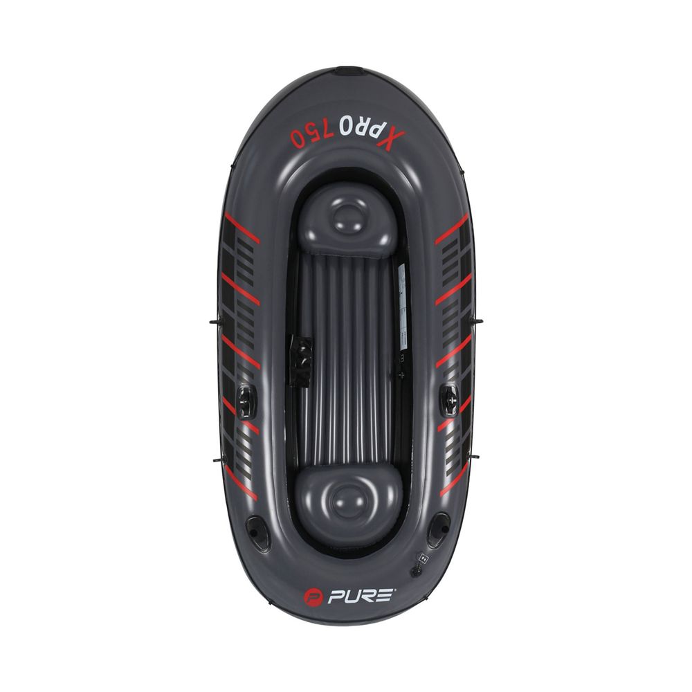 Βάρκα XPro-750 από την Pure4Fun, ιδανική για χρήση στην θάλασσα, σε πισίνα ή σε ένα ταξίδι αναψυχής σε μια λίμνη. Κατάλληλη για 2 ενηλίκους και 1 παιδί, διαθέτει σχοινί δεσίματος, 2 κουπιά, τρόμπα χειρός, 2 βάσεις για καλάμι ψαρέματος, 2 φουσκωτά καθίσματα, θήκη για αντικείμενα και κάλυμμα επισκευής.