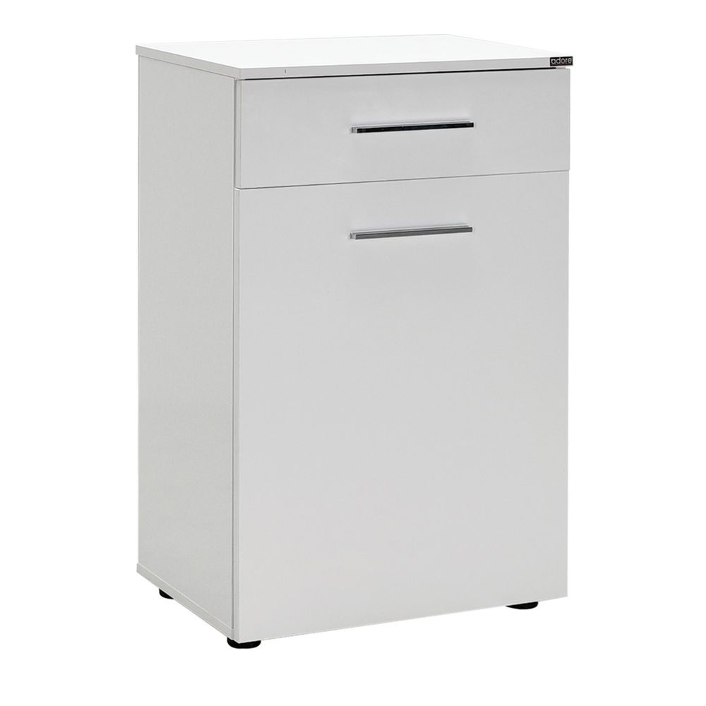 Έπιπλο μπάνιου με καλάθι ρούχων με πόρτα και συρτάρι σε λευκό χρώμα. Το καλάθι είναι ανοιγόμενο και στο πάνω μέρος διαθέτει 1 συρτάρι για να αποθηκεύεις τα πράγματα σου.