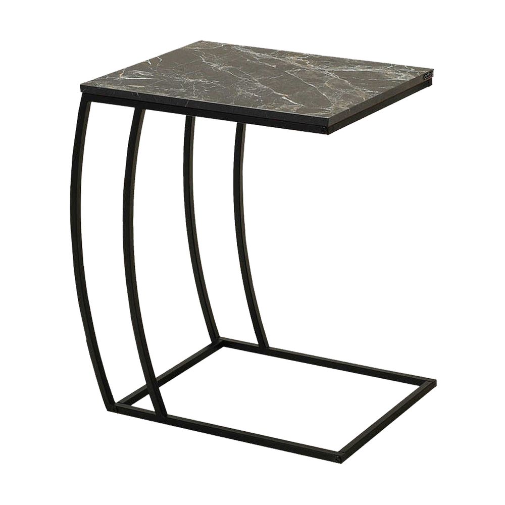 Βοηθητικό τραπεζάκι για το σαλόνι σε μαύρο χρώμα με εφέ μαρμάρου και μοντέρνο σχεδιασμό. Είναι κατασκευασμένο από ξύλο MDF_E1 και διαθέτει μαύρο μεταλλικό σκελετό.
