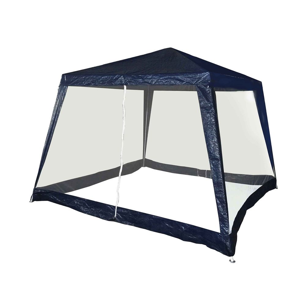 Κιόσκι 3x3m με σίτα, σε μπλε χρώμα, κατασκευασμένο από ύφασμα πολυαιθυλένιου. Ιδανικό για να τοποθετηθεί σε κήπο, παραλία, camping, αφού σε προστατεύει από την είσοδο εντόμων.