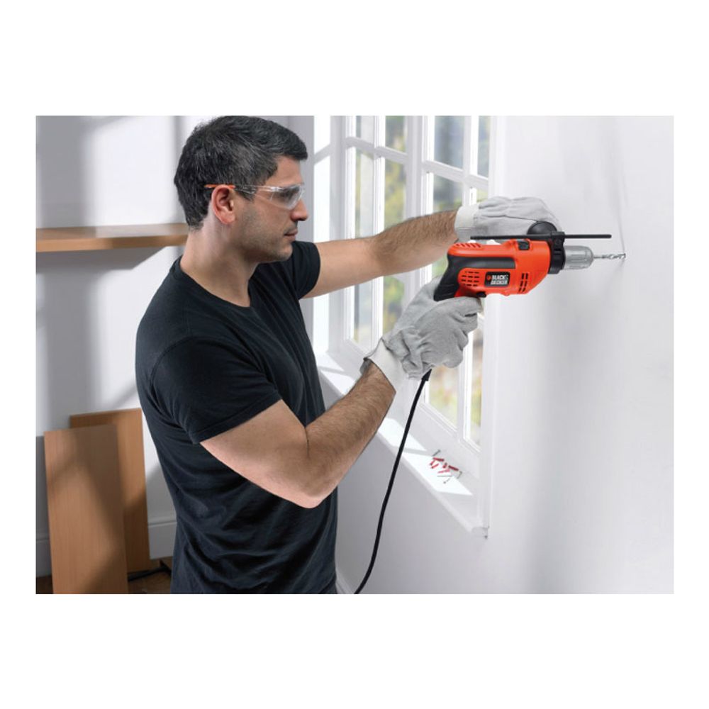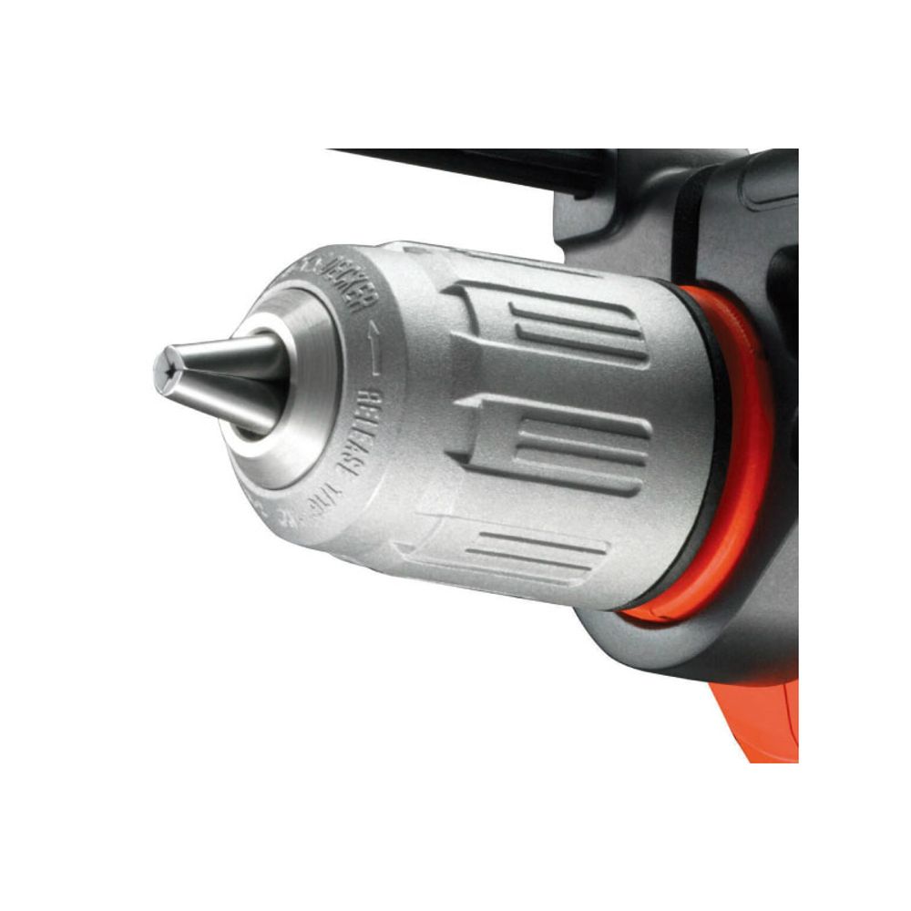 Κρουστικό δράπανο Black & Decker KR554CRES-QS, με ισχύ 550 Watt και κλείδωμα άξονα για εύκολη αλλαγή και μέγιστη σύσφιξη των εξαρτημάτων. Ιδανικό για εργασίες βιδώματος και τρυπήματος σε ξύλο, χάλυβα καθώς και εργασίες τρυπήματος σε μπετόν.