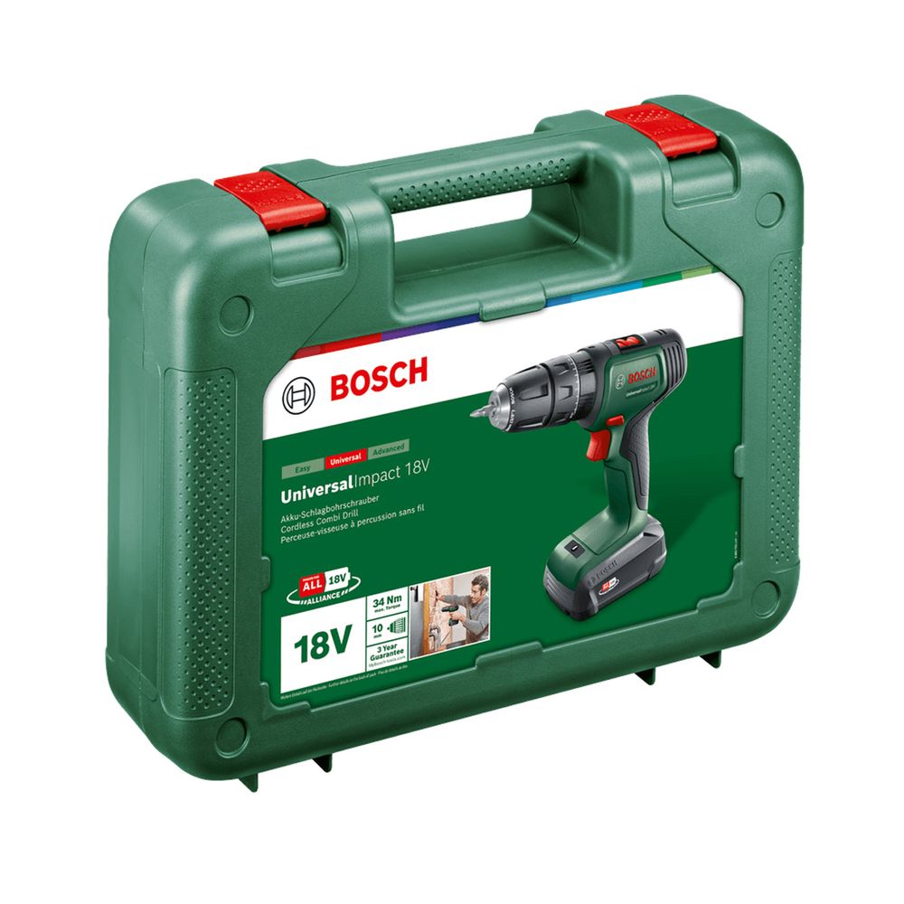 Ισχυρό, ελαφρύ συμπαγές κρουστικό δραπανοκατσάβιδο μπαταρίας Bosch, με εργονομικό σχεδιασμό και κιβώτιο 2 ταχυτήτων. Το UniversalImpact 18V είναι σχεδιασμένο για τρύπημα και βίδωμα σε ξύλο και μέταλλο, καθώς και για τρύπημα με κρούση σε τοιχοποιία. Περιλαμβάνει μπαταρία 18V, φορτιστή και κασετίνα.