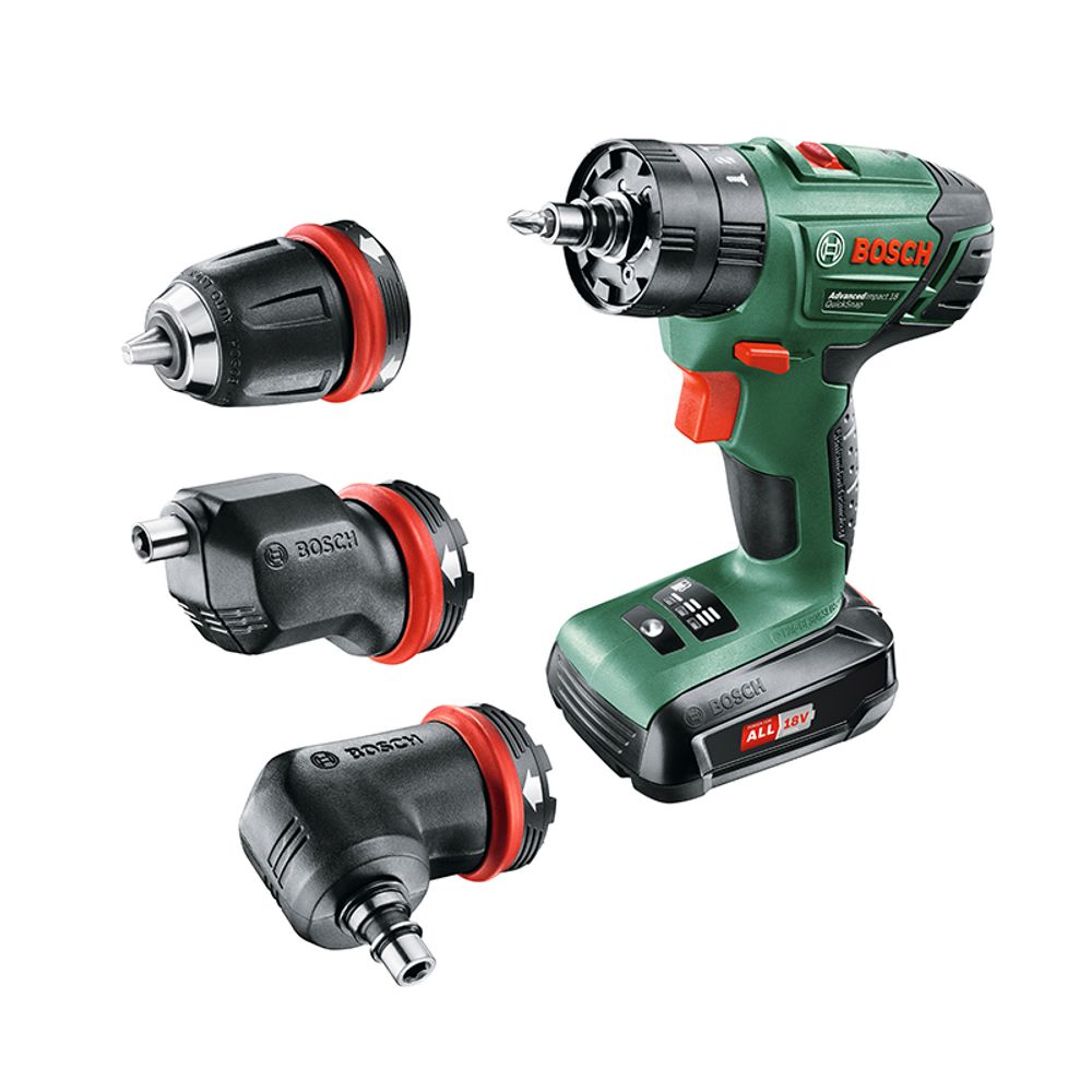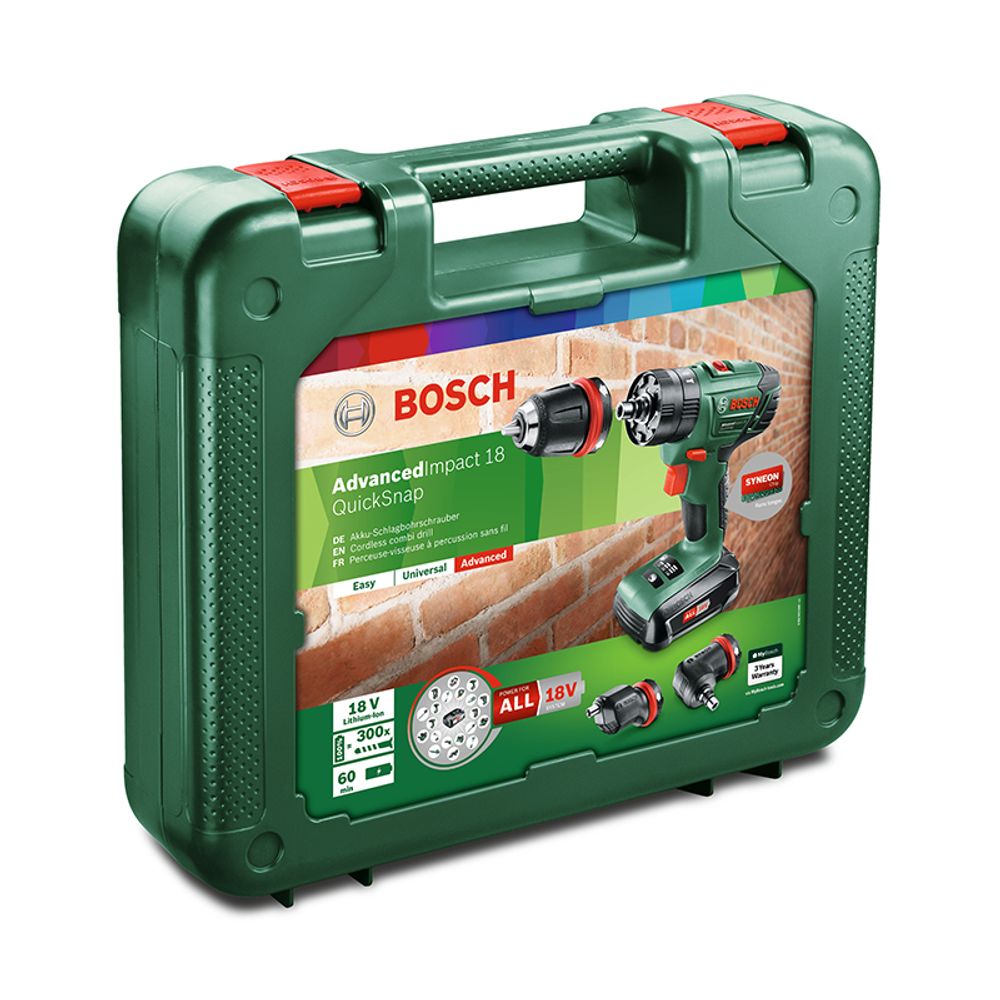 Κρουστικό δραπανοκατσάβιδο μπαταρίας ιόντων λιθίου Bosch AdvancedImpact 18, ιδανικό για βίδωμα, τρύπημα σε ξύλο, μέταλλο και μπετόν. Προσφέρει ακριβή εργασία με ιδανική ευελιξία στα δυσπρόσιτα σημεία.
