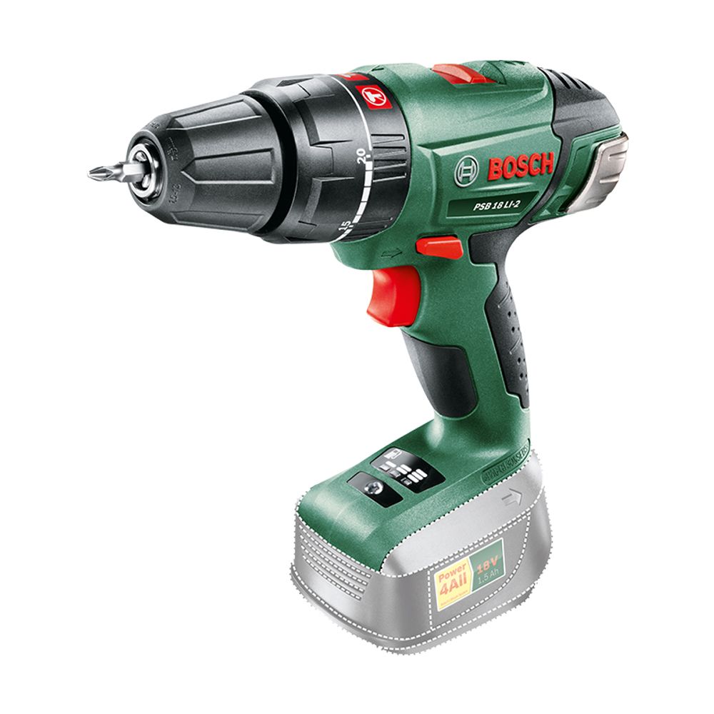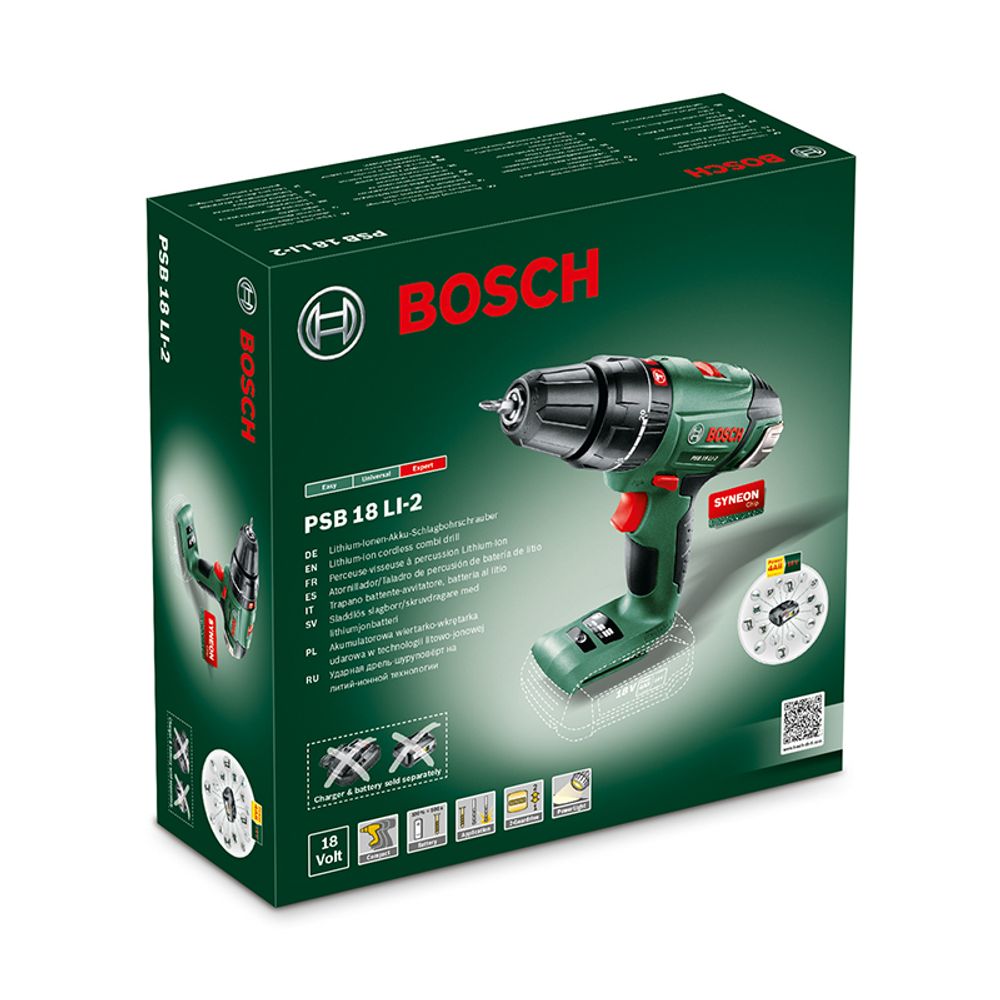 Bosch Κρουστικό Δραπανοκατσάβιδο Μπαταρίας Ιόντων Λιθίου PSB 18 LI-2 (SOLO), ιδανικό για βίδωμα, ή τρύπημα σε ξύλο, μέταλλο και μπετόν. Η ευκολότερη χρήση στην κατηγορία του χάρη στη συμπαγή κατασκευή και στο μικρό βάρος!