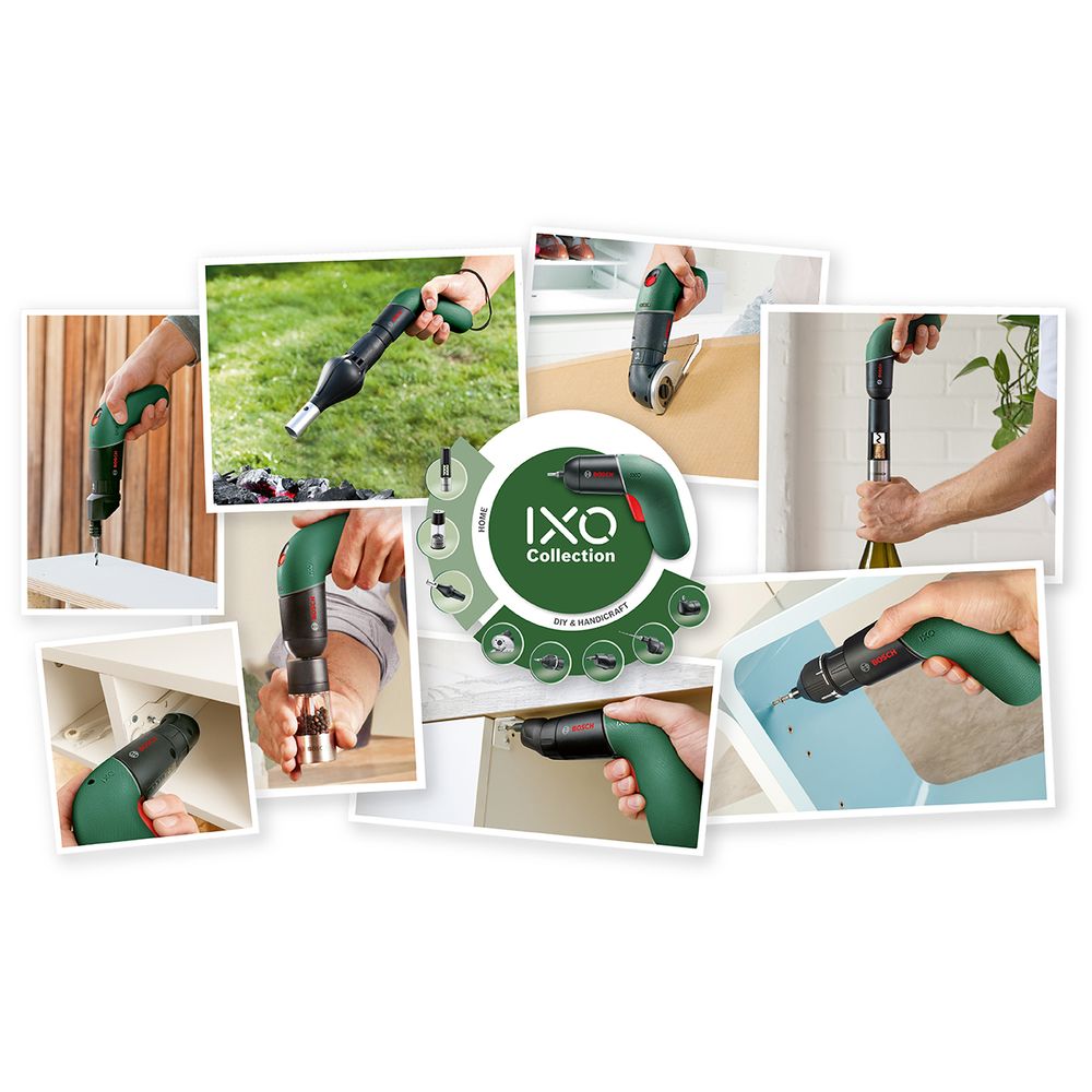 Το IXO καθιστά την εργασία σε ευαίσθητα υλικά, όπως βερνικωμένο ξύλο, απλή και διαισθητική. Παρακολούθησε προσεκτικά τη διάρκεια ζωής της μπαταρίας με την ένδειξη μπαταρίας 3 LED για να έχεις μια λεπτομερή εικόνα του υπολειπόμενου χρόνου εργασίας. Το IXO διατίθεται με μια πλατιά συλλογή χρήσιμων προσαρτημάτων για ένα ευρύ φάσμα εργασιών μέσα και γύρω από το σπίτι για μια περισσότερο άνετη διαδικασία βιδώματος καθώς και πολλά άλλα, που ανοίγουν έναν νέο κόσμο εφαρμογών.