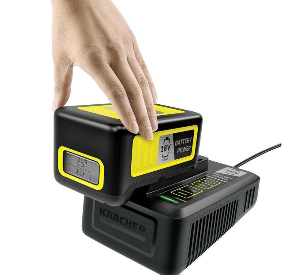 5 Ah της πλατφόρμας Battery Power της Kärcher στο 80% μέσα σε μόλις 44 λεπτά. Μπορεί επίσης να χρησιμοποιηθεί σε όλες τις ανταλλάξιμες μπαταρίες 18 V της πλατφόρμας μπαταριών 18 V της Kärcher.
