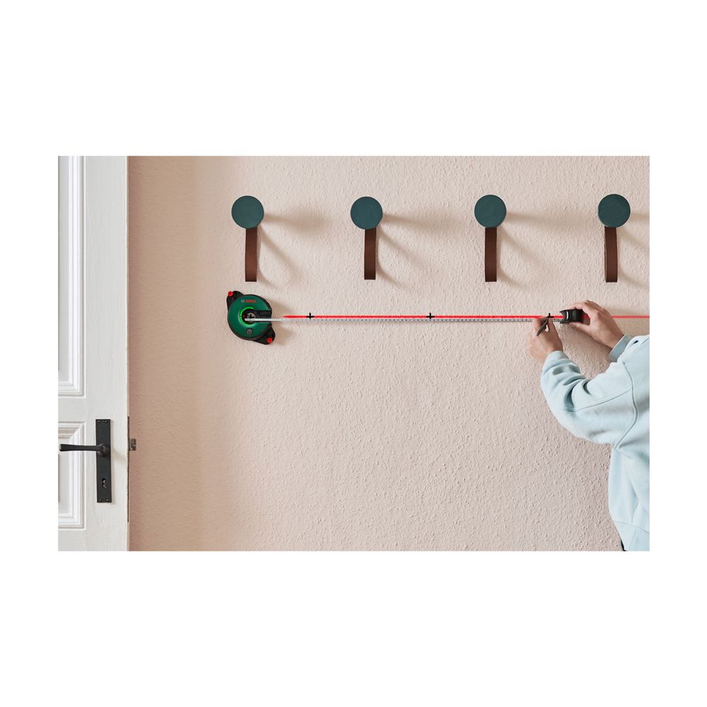 Γραμμικό λέιζερ με ενσωματωμένη μετροταινία για εύκολη προσάρτηση, ευθυγράμμιση και μέτρηση. Το πατάκι σιλικόνης ή οι πινέζες εξασφαλίζουν, ότι το γραμμικό λέιζερ μπορεί να στερεωθεί σε διάφορες επιφάνειες. Επιπλέον, βοηθάει στην ευθυγράμμιση και την προσάρτηση εικόνων, ραφιών, καθρεφτών, λαβών ή άγκιστρων ή ακόμη και μιας τηλεόρασης.