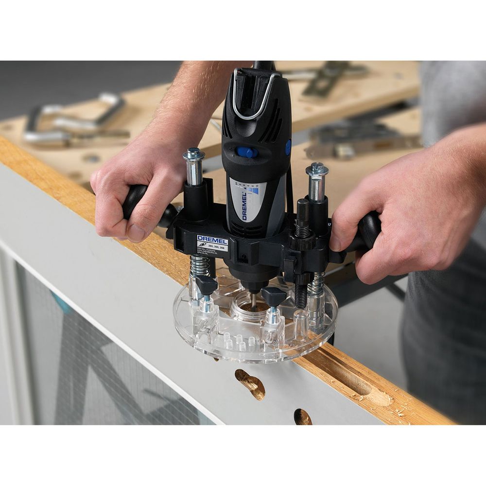 Το προσάρτημα 335 μετατρέπει το Dremel εργαλείο σου σε μια βυθιζόμενη φρέζα ιδανική για το φρεζάρισμα κύκλων, εργασίες επιγραφών και σκαλισμάτων, διακοσμητικές ακμές, αλλά και για το παράλληλο φρεζάρισμα σε ακμή.