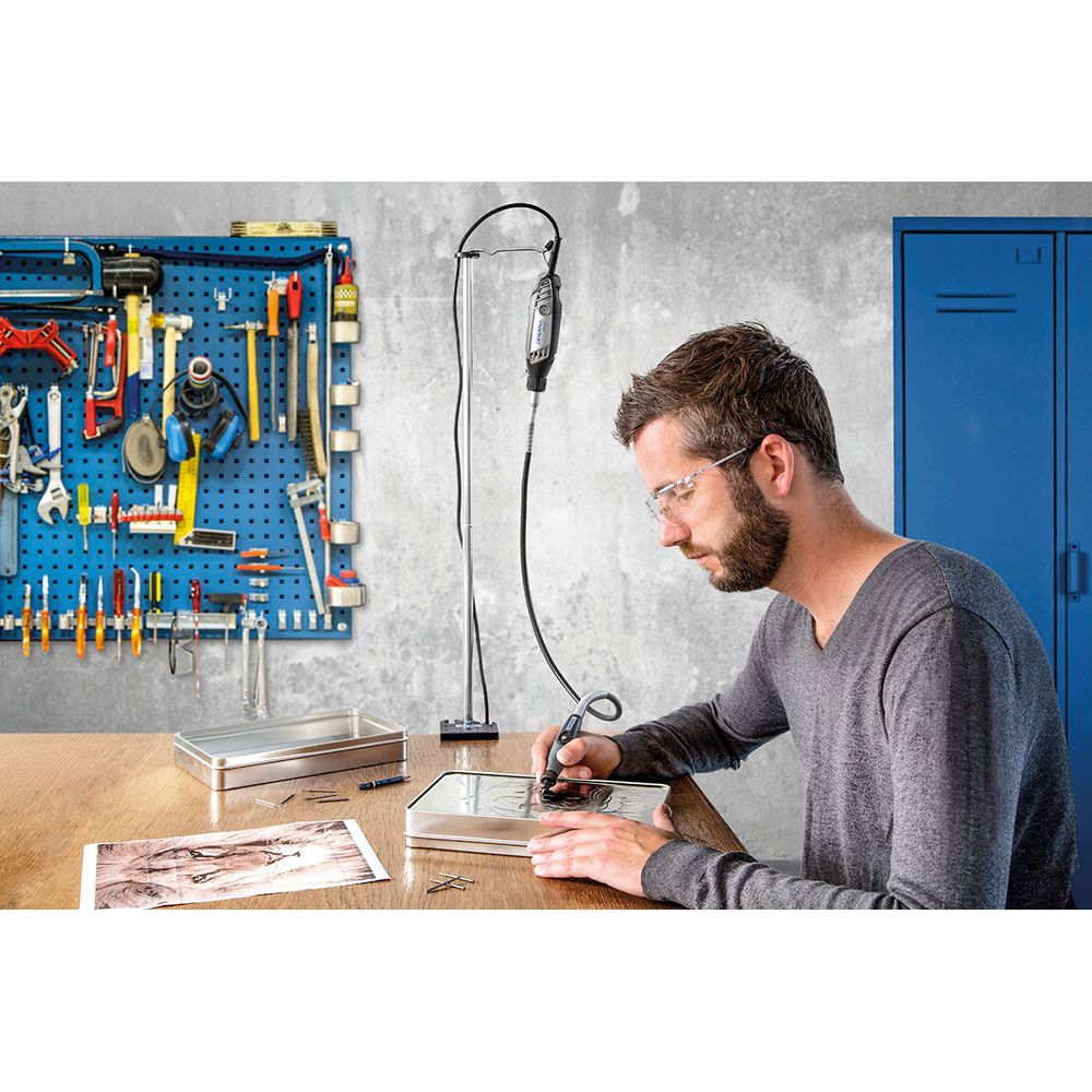 Χάρη στη βάση εργαλείου 2222 της Dremel το συμβατό πολυεργαλείο σου αναρτάται άνετα πάνω από τον πάγκο εργασίας και με απόλυτη σταθερότητα.