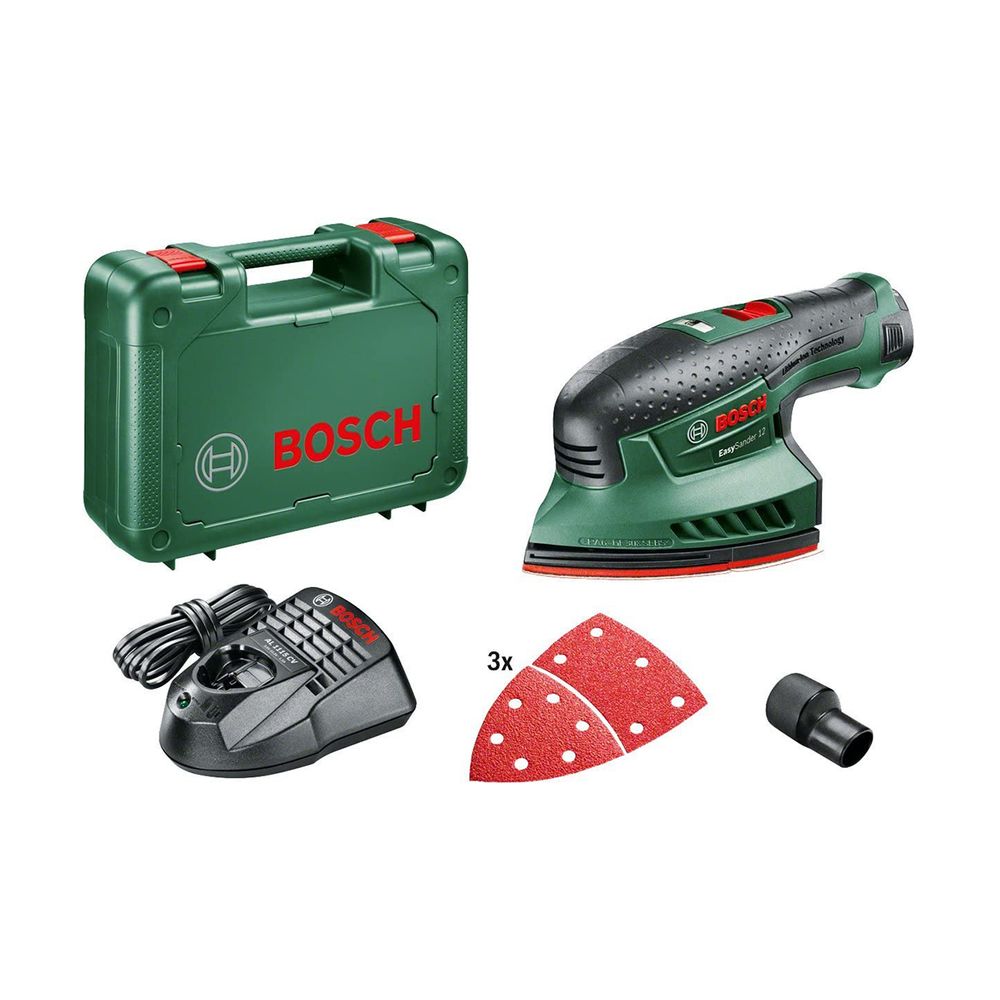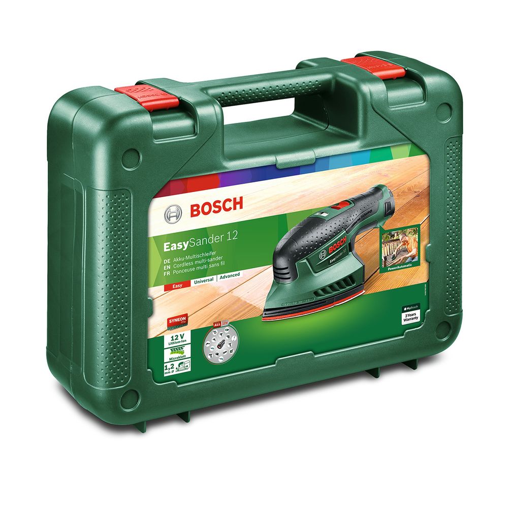 Λόγω της πλάκας λείανσης από δελτοειδές σχήμα, το Bοsch EasySander 12 είναι το καταλληλότερο τριβείο για λείανση σε δύσκολες περιοχές. Λειτουργεί με ταχύτητα περιστροφής στα 2200 rpm και είναι ιδανικό για χρήση σε σκληρό ξύλο, μαλακό ξύλο, πέτρα, μέταλλο και βερνικωμένες και βαμμένες επιφάνειες.