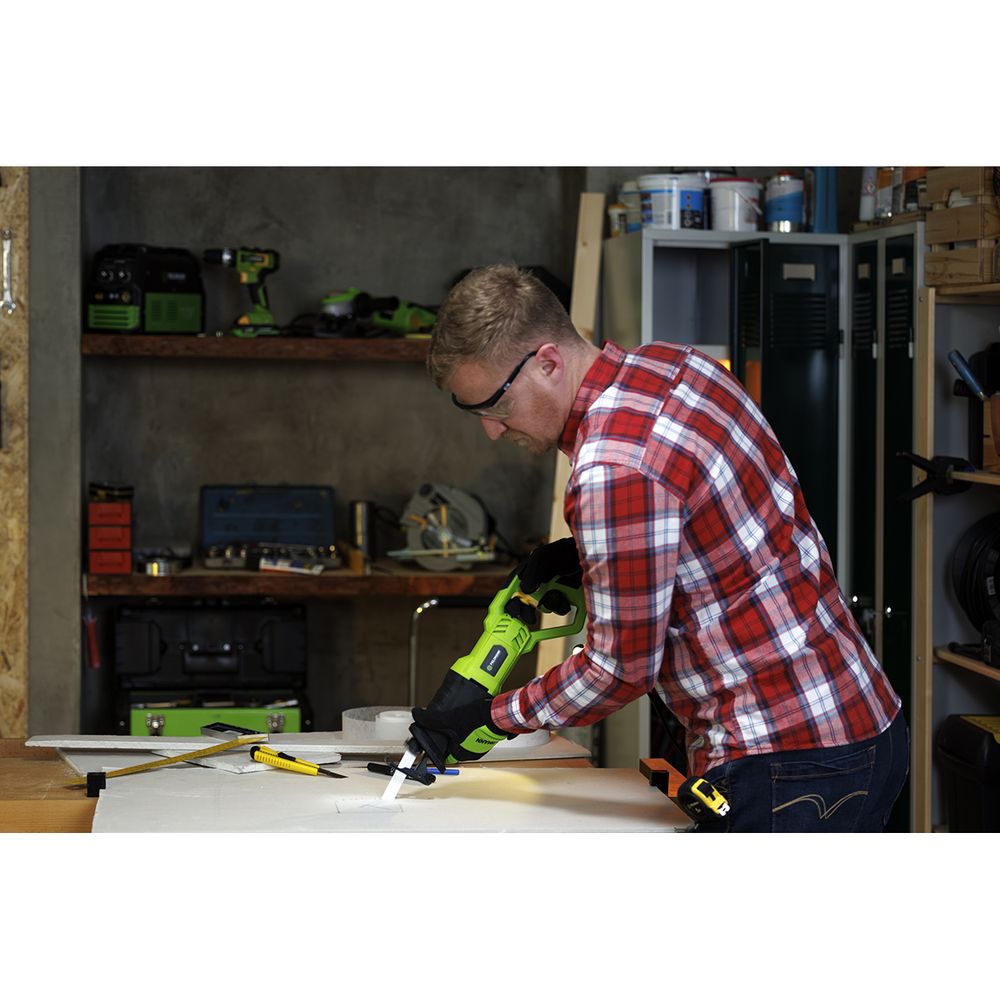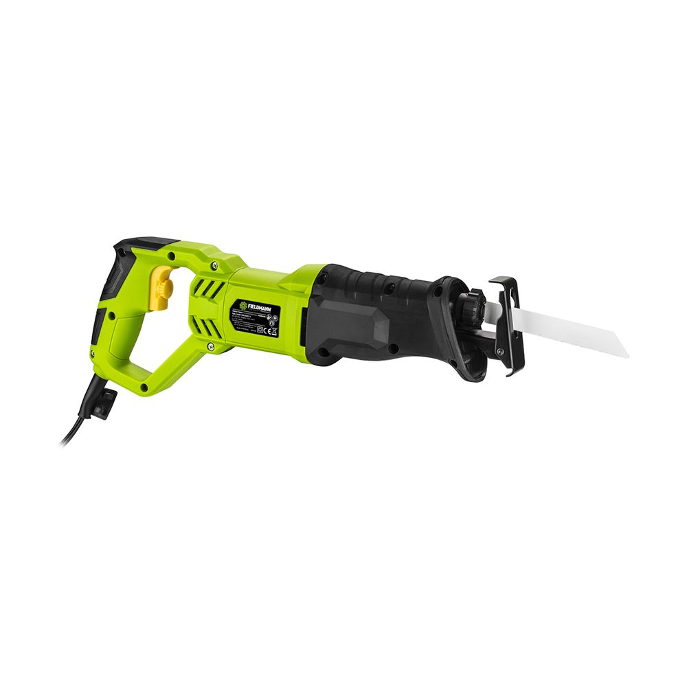 Σπαθοσέγα Fieldmann, με ισχύ 710 W και ταχύτητα έως 2800 rpm, βάθος κοπής ξύλου 115 mm, σιδερου 5 mm και μεταλλικού σωλήνα 60 mm, εργονομική και μαλακή λαβή και τσοκ γρήγορης δράσης.