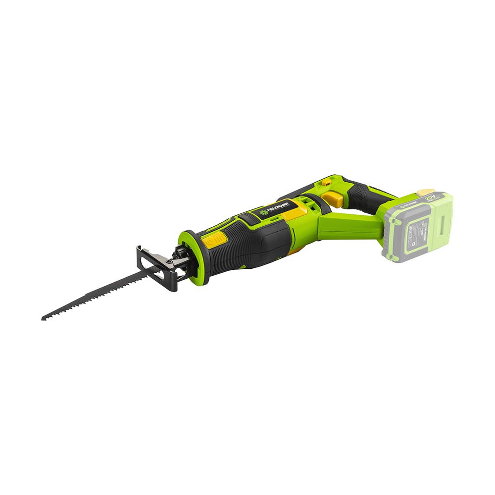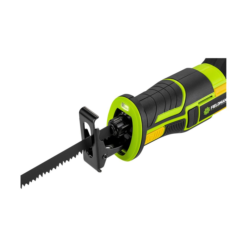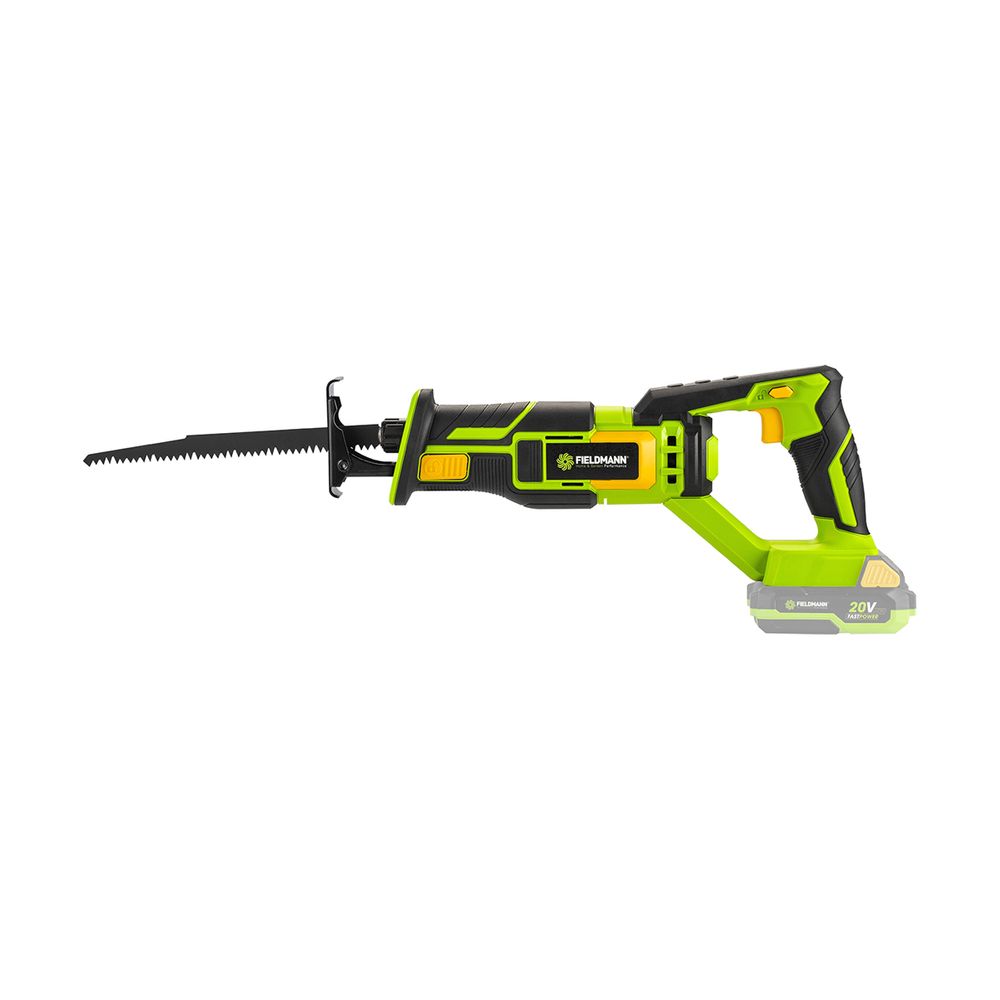 Ασύρματο σιδηροπρίονο της Fieldmann, με ισχύ μπαταρίας 1 x 20V και 3000 rpm, εργονομική λαβή, τσοκ γρήγορης δράσης, μέγιστη κοπή ξύλου 100 mm, μαλακό μέταλλο 20 mm και χάλυβα 10 mm. Δεν περιλαμβάνονται μπαταρίες και φορτιστής.