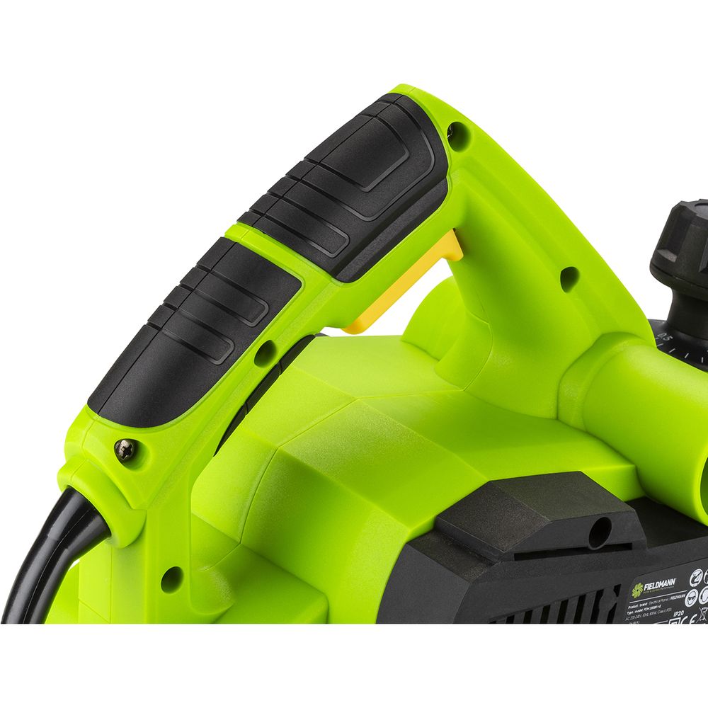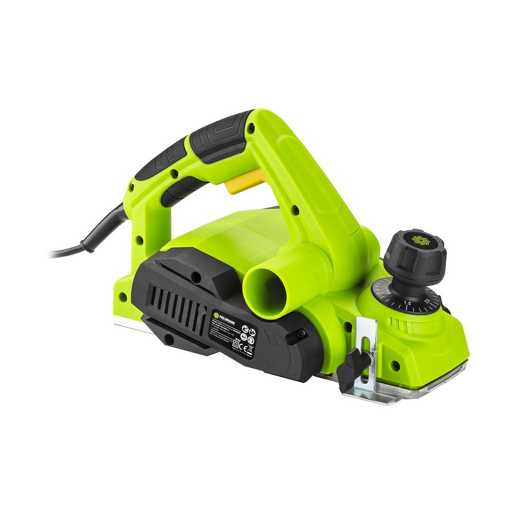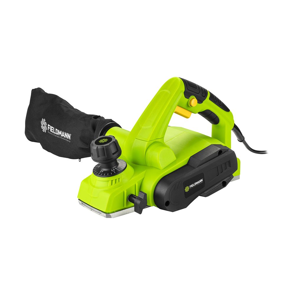 Ηλεκτρική πλάνη FDH 200801-E από την Fieldmann, με ισχύ 800 W, με πλάτος πλανίσματος 82 mm, έως 16000 rpm, ιδανική για ξυλουργικές εργασίες από ερασιτέχνες και επαγγελματίες για λείανση επιφανειών ή αφαίρεση ανεπιθύμητων κομματιών με βάθος έως 2 mm από τις επιφάνειες.
