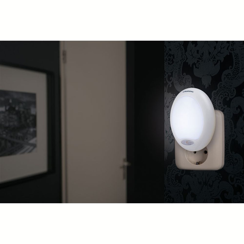 Φωτάκι νυκτός Grundig 55664 LED λευκού φωτισμού με αισθητήρα φωτός για να ανάβει αυτόματα τη νύχτα και να σβήνει την ημέρα. Λειτουργεί μόνο με 0.6 Watt για εξοικονόμηση ενέργειας.