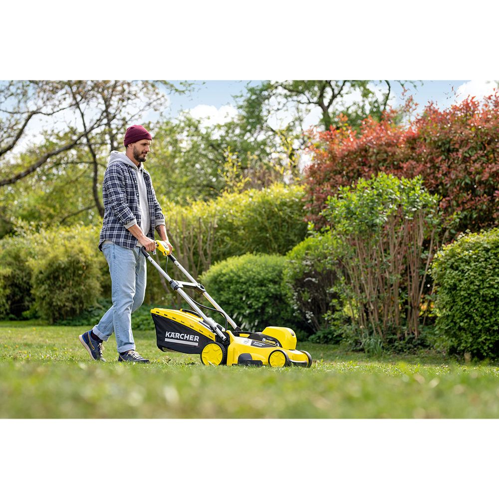 Κάνει την κοπή του γκαζόν απλούστερη από ποτέ: το χλοοκοπτικό μηχάνημα μπαταρίας LMO 36-40 Battery Set της Karcher με μεγάλο πλάτος κοπής και μεγάλο κάδο συλλογής χόρτων για γρήγορη κοπή με ελάχιστες διακοπές. Δεν περιλαμβάνει μπαταρία και φορτιστή.