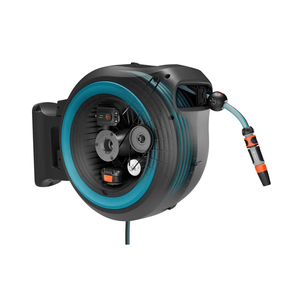 Το επιτοίχιο καρούλι λάστιχου PowerRoll XXL τυλίγει αυτόματα το λάστιχο μετά τη χρήση με το πάτημα ενός κουμπιού. Με μήκος 40m, ξετυλίγεται εύκολα για το πότισμα πολύ μεγάλων κήπων ενώ χάρη στην καινοτόμο λειτουργία RollControl+, το λάστιχο τυλίγεται πάντα εύκολα και χωρίς διακοπές. Λειτουργεί με την ενσωματωμένη μπαταρία 18V POWER FOR ALL που είναι συμβατή με άλλες συσκευές.