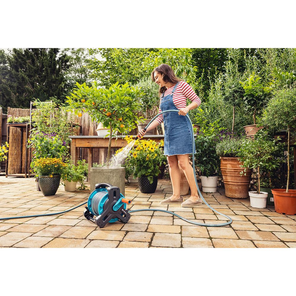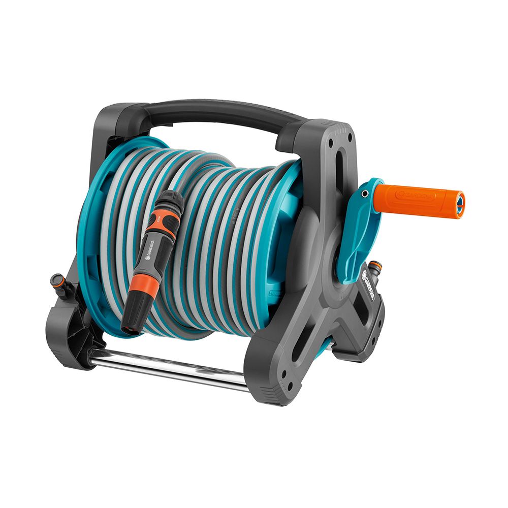 Το Classic Hose Reel 10 Set της GARDENA σου παρέχει όλα όσα χρειάζεσαι για άνετο πότισμα. Χρησιμοποιώντας τη μανιβέλα χειρός που λειτουργεί ελεύθερα, μπορείς να τυλίγεις αβίαστα τον εύκαμπτο σωλήνα κήπου και να τον αποθηκεύεις τακτοποιημένα, χωρίς τσακίσματα ή ενοχλητικά μπερδέματα. Ολόκληρο το σετ είναι κατασκευασμένο από υλικά υψηλής ποιότητας και επομένως είναι ιδιαίτερα ανθεκτικό στην καθημερινή φθορά.