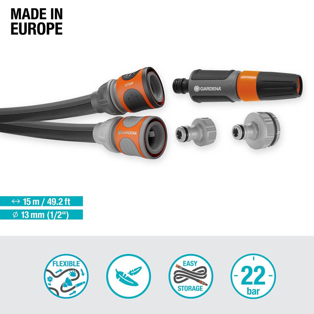 Gardena Liano Life 1/2" 15m Υφασμάτινο Λάστιχο με Ακροφύσιο & Συνδέσμους OGS Set