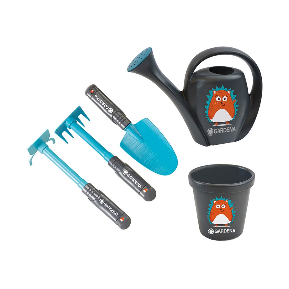 Το σετ περιποίησης κήπου Gardena Σκαντζόχοιρος είναι ιδανικό για μικρά παιδιά που θέλουν να βοηθήσουν στον κήπο. Περιλαμβάνει φτυάρι, τσουγκράνα, σκαλιστήρι, γλάστρα και ποτιστήρι, όλα με χαριτωμένο μοτίβο σκαντζόχοιρου. Τα εργαλεία είναι κατασκευασμένα από ανθεκτικό πλαστικό και μέταλλο, σχεδιασμένα για να ταιριάζουν στα παιδικά χέρια και να είναι εύκολα στη χρήση.